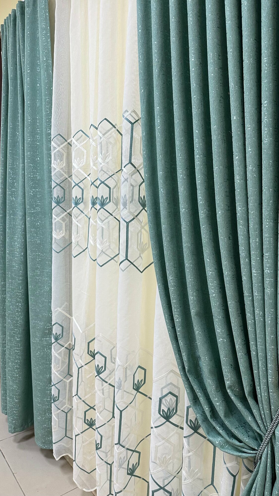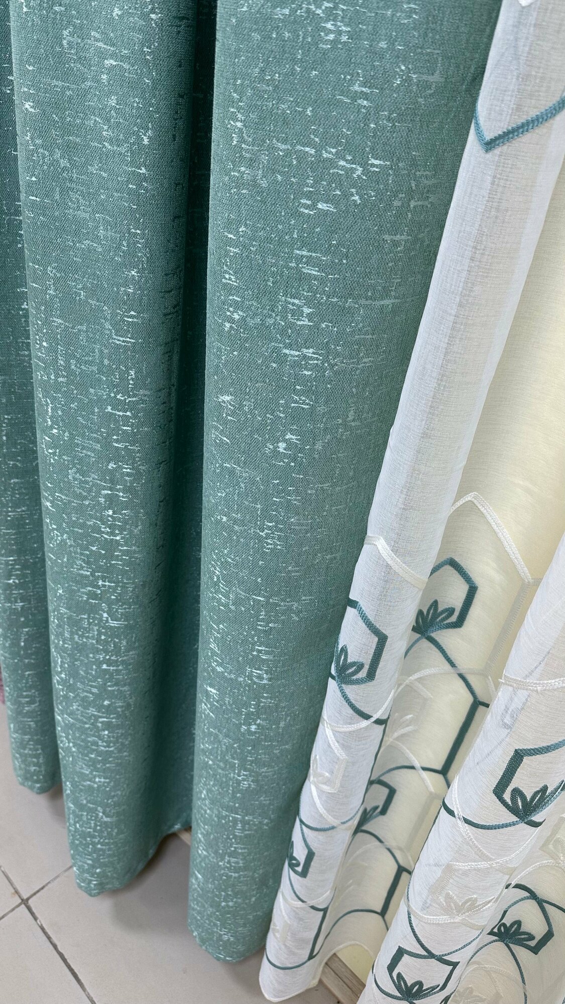 Портьеры однотонные зеленые, ширина 3м, высота 2,7м