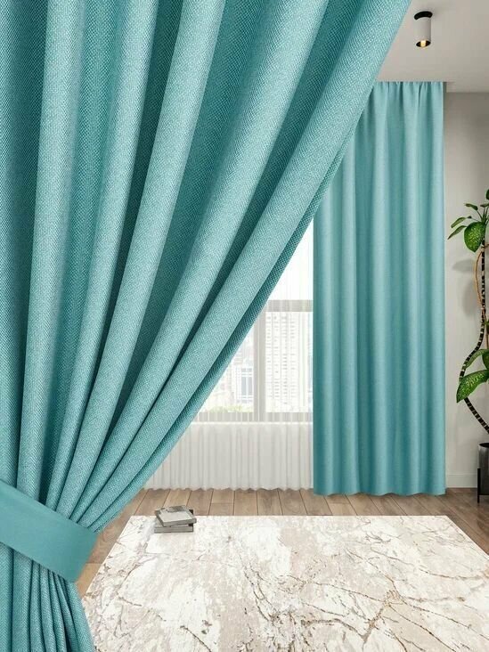 СохранитьКомплект штор блэкаут 400х260 2 шт по 200 см , IDEA HOME / затемнение более 90% , рогожка однотонный бирюзовый интересное:
