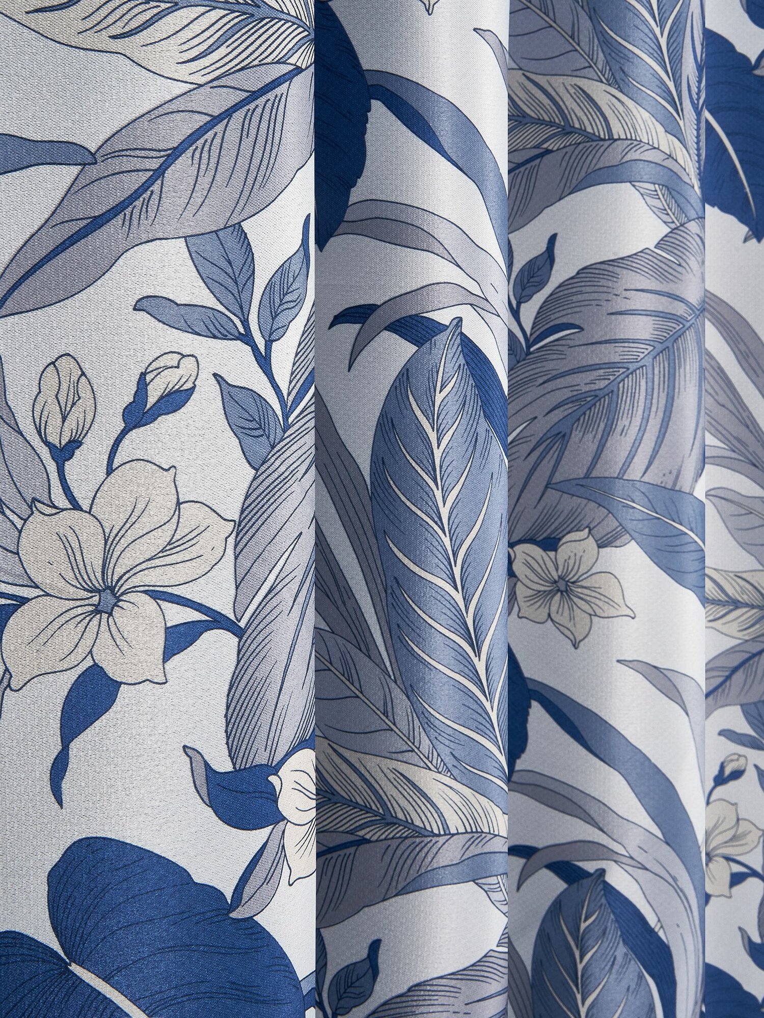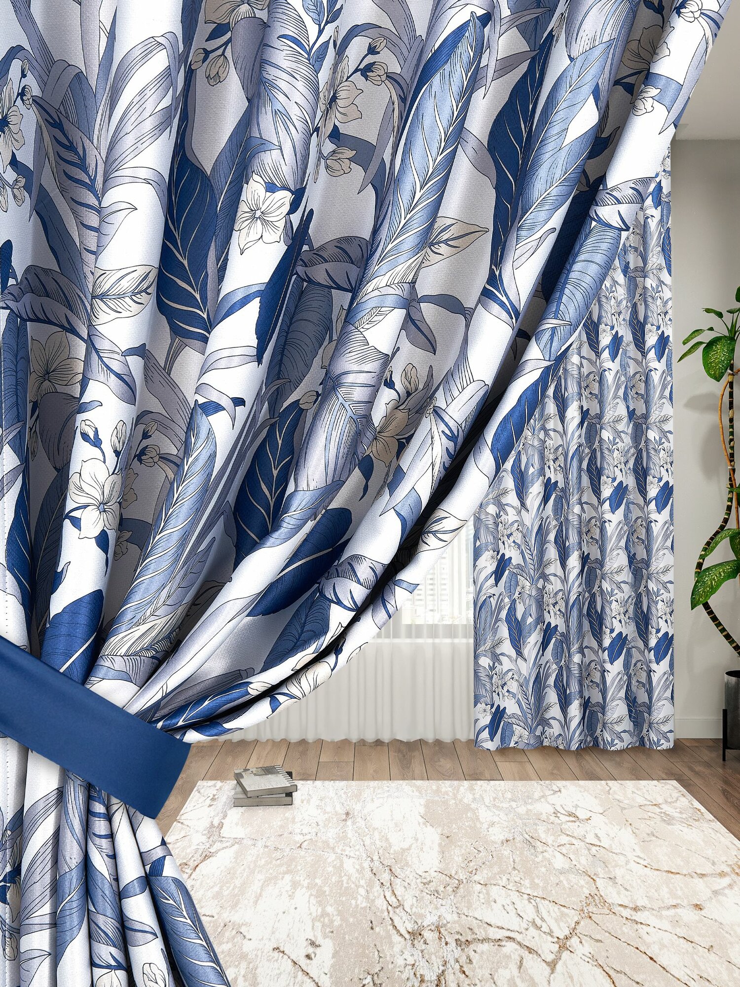Комплект штор блэкаут 400х270 2 шт по 200 см , IDEA HOME / затемнение более 90% , рогожка синий цветочный принт