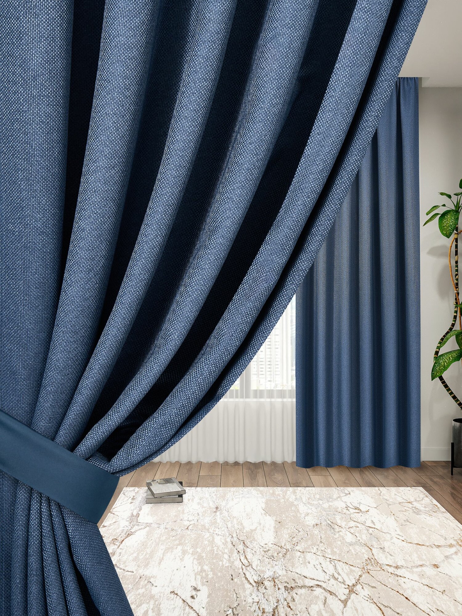 Комплект штор блэкаут 400х270 2 шт по 200 см , IDEA HOME / затемнение более 90% , рогожка однотонный синий
