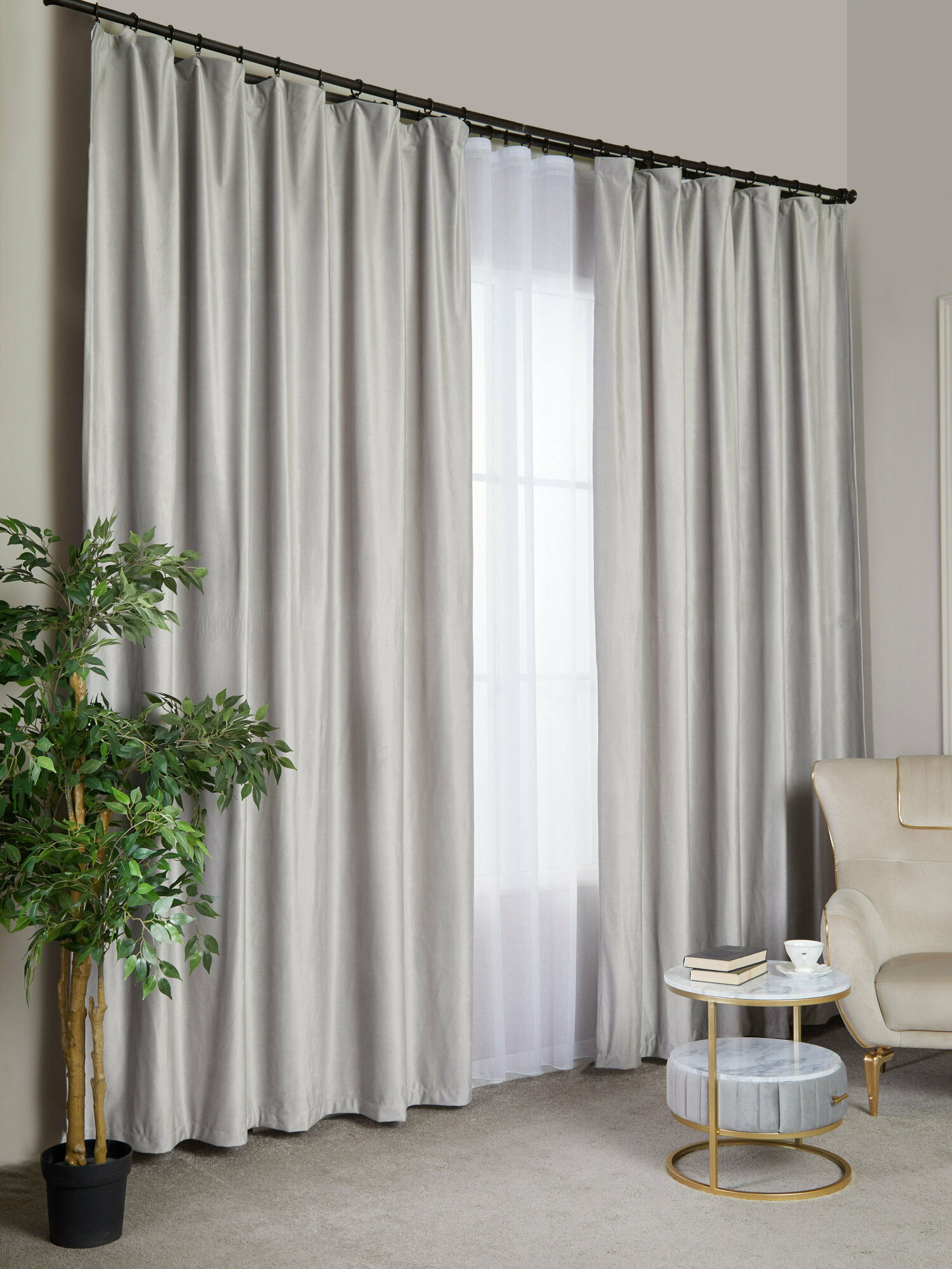 Готовый комплект плотных интерьерных штор(портьер) бархат (2 шт, каждая штора 350x240 см) со шторной лентой