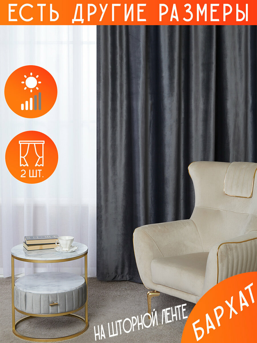 Готовый комплект плотных интерьерных штор(портьер) бархат (2 шт, каждая штора 250x260 см) со шторной лентой
