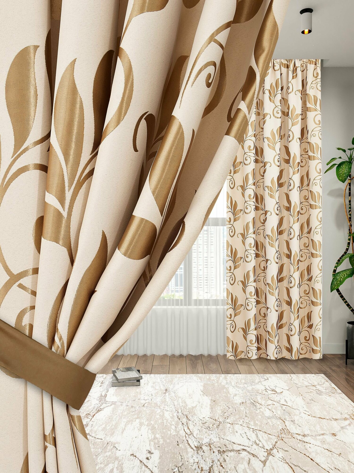 Шторы комнатные IDEA HOME/комплект из 2 шт по 200 см/ портьеры для комнаты, кухни, спальни, гостиной и дачи 270х400см/ французский жаккард/ бежевый