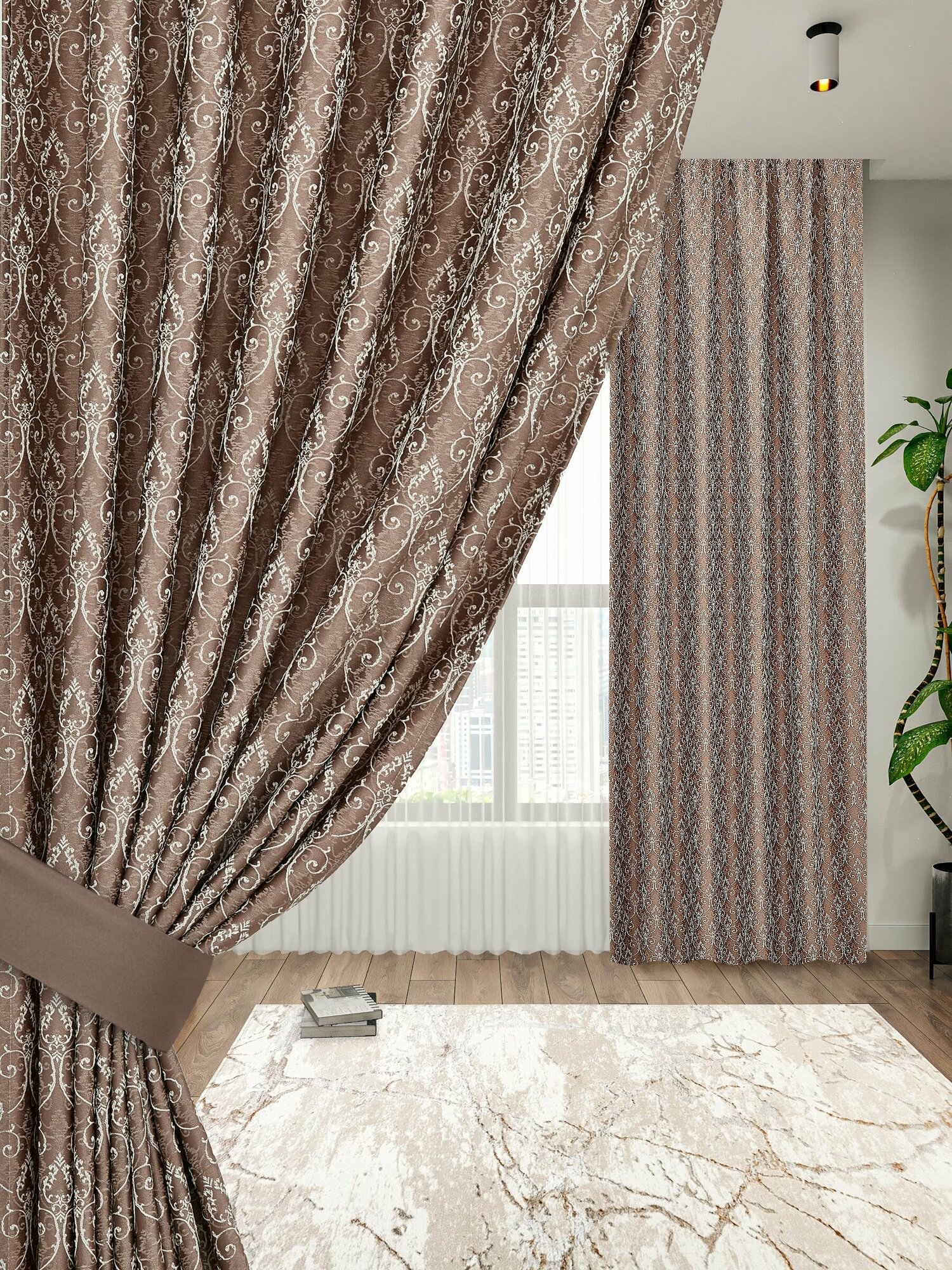 Шторы комнатные IDEA HOME/комплект из 2 шт по 200 см/ портьеры для комнаты, кухни, спальни, гостиной и дачи 270х400см/ французский жаккард/ коричневый