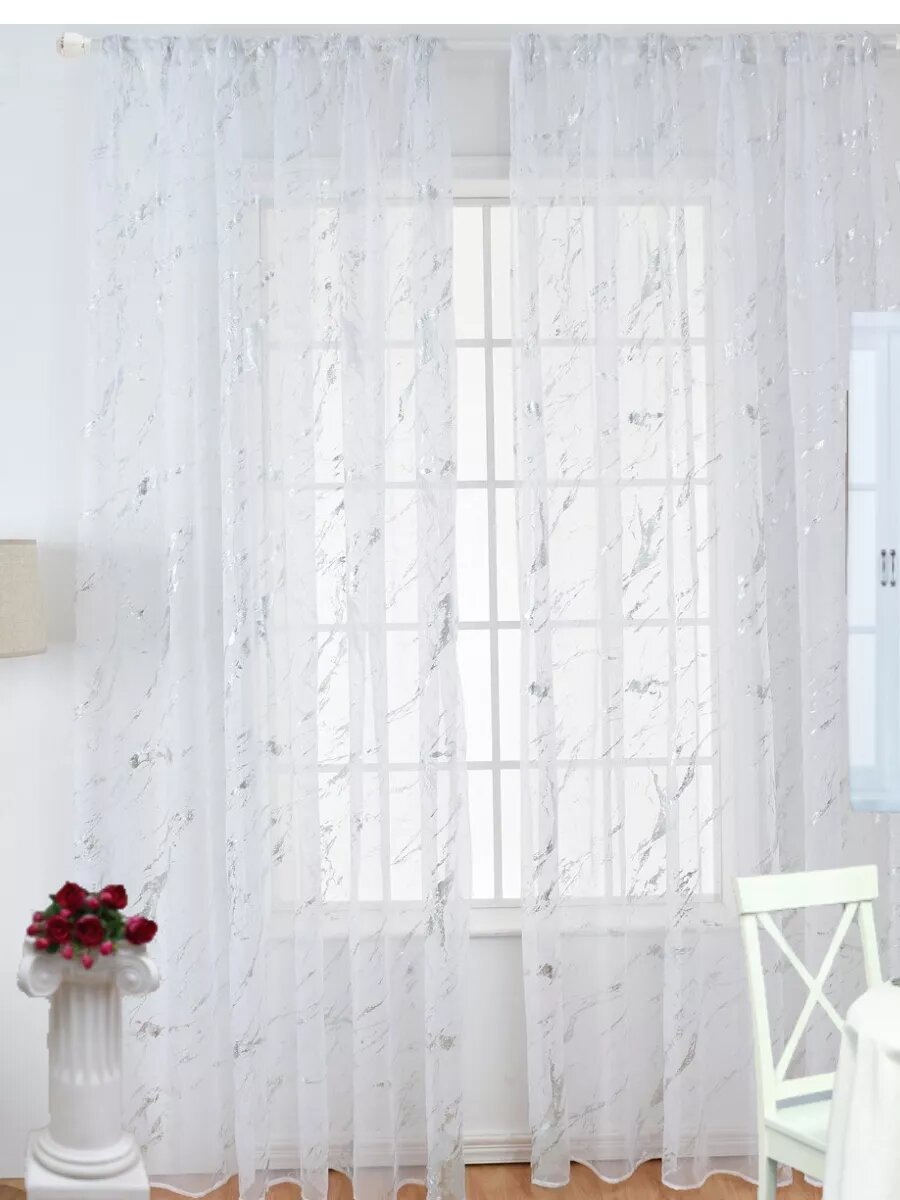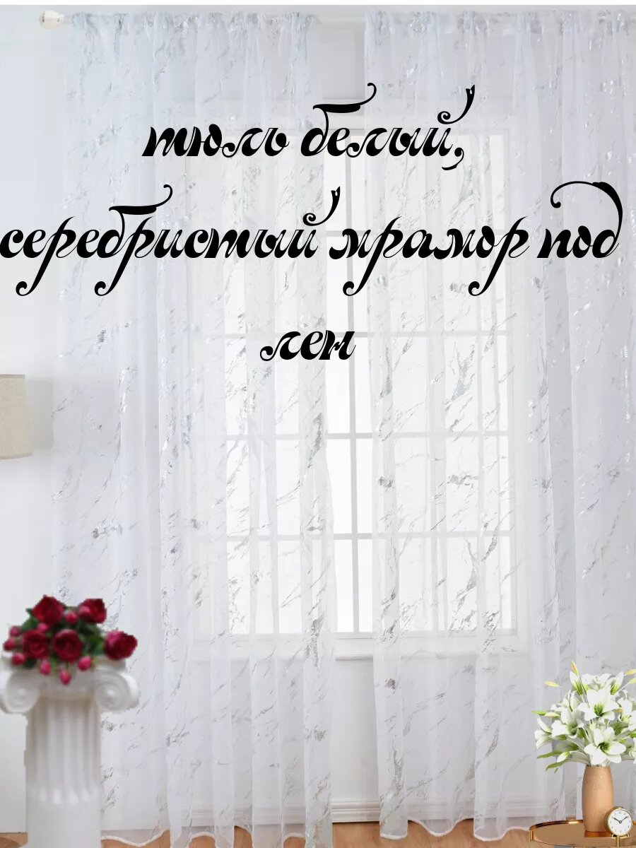 Тюль под лен белый мрамор 700х230см интересное: