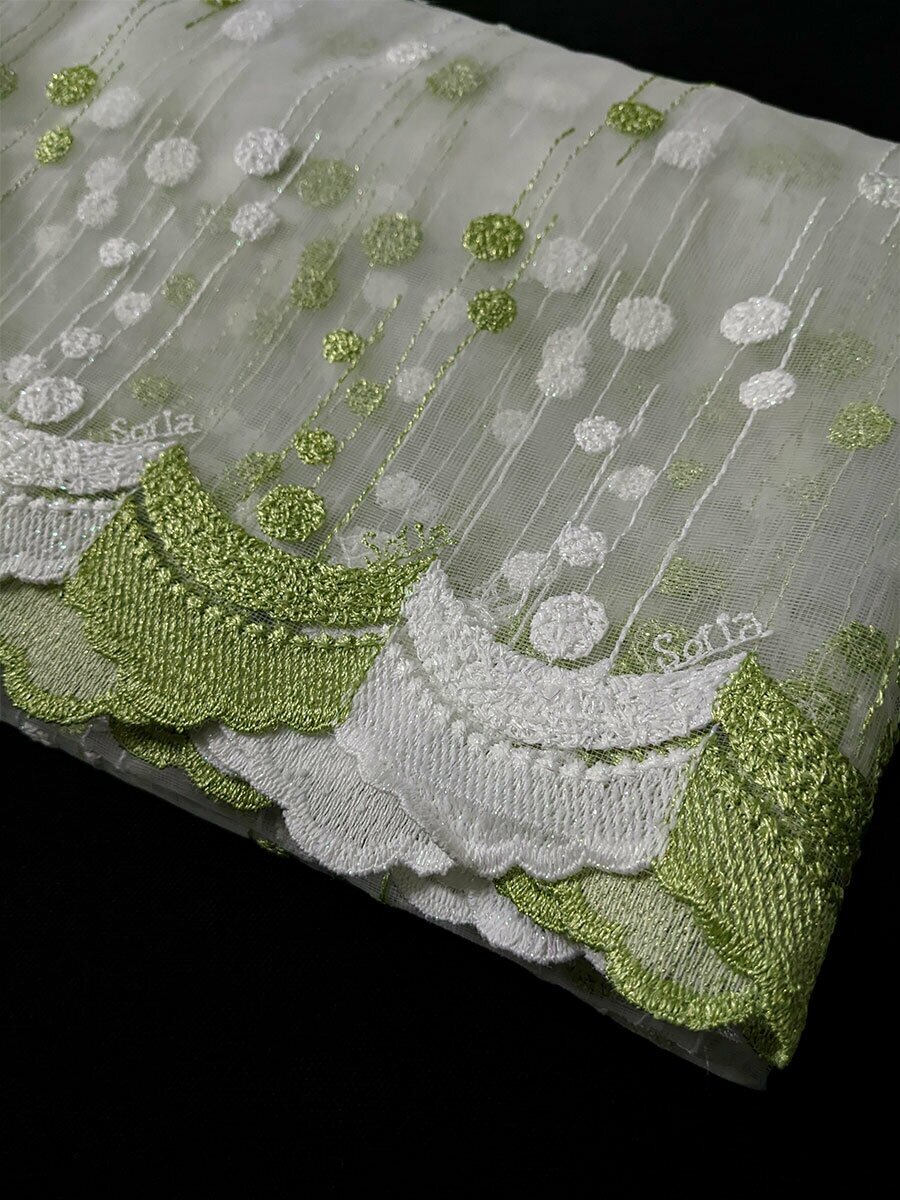 Однотонный тюль микросетка с вышивкой и люрексом 1150x250 см.