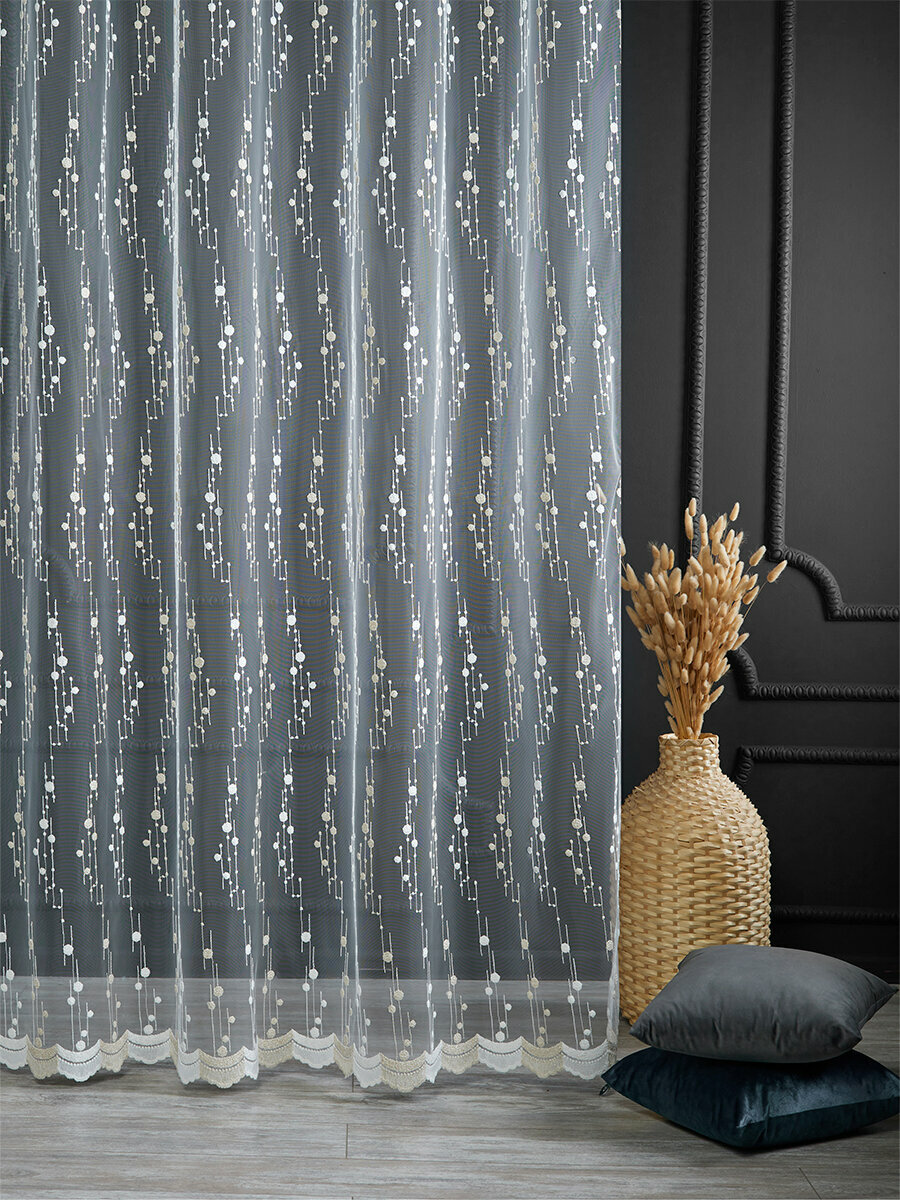 Купить Однотонный тюль микросетка с вышивкой и люрексом 600x260 см.