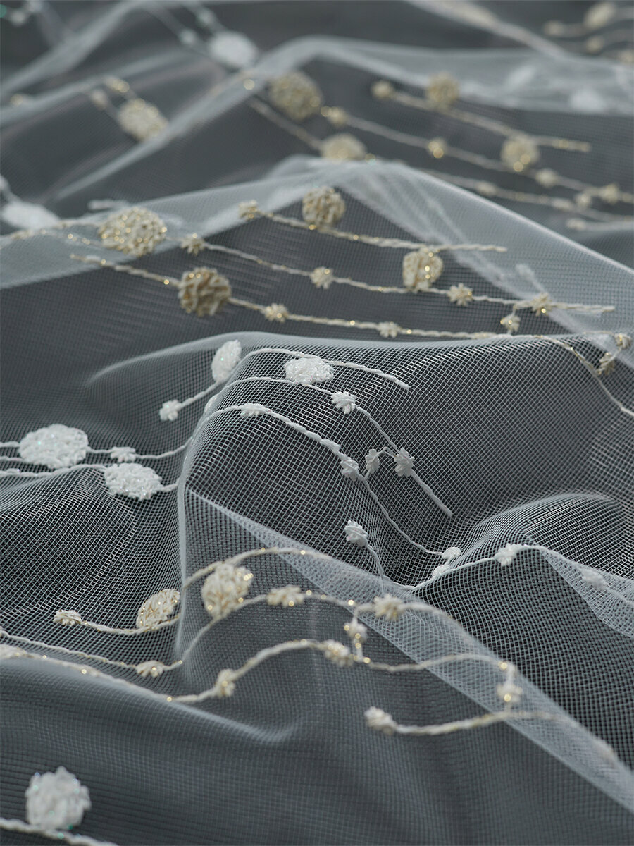 Однотонный тюль микросетка с вышивкой и люрексом 750x280 см.