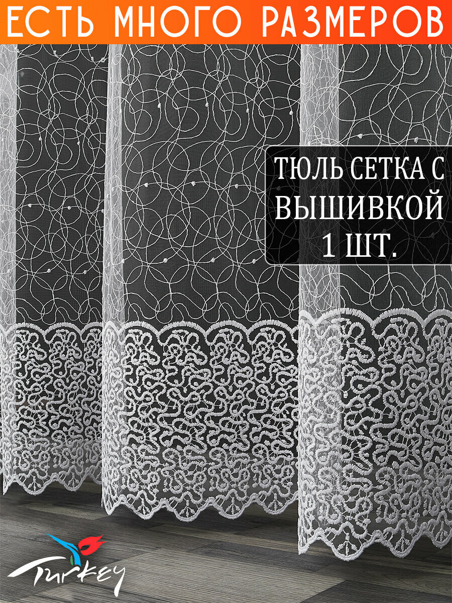 СохранитьОднотонный тюль микросетка с вышивкой и люрексом 1150x240 см. интересное: