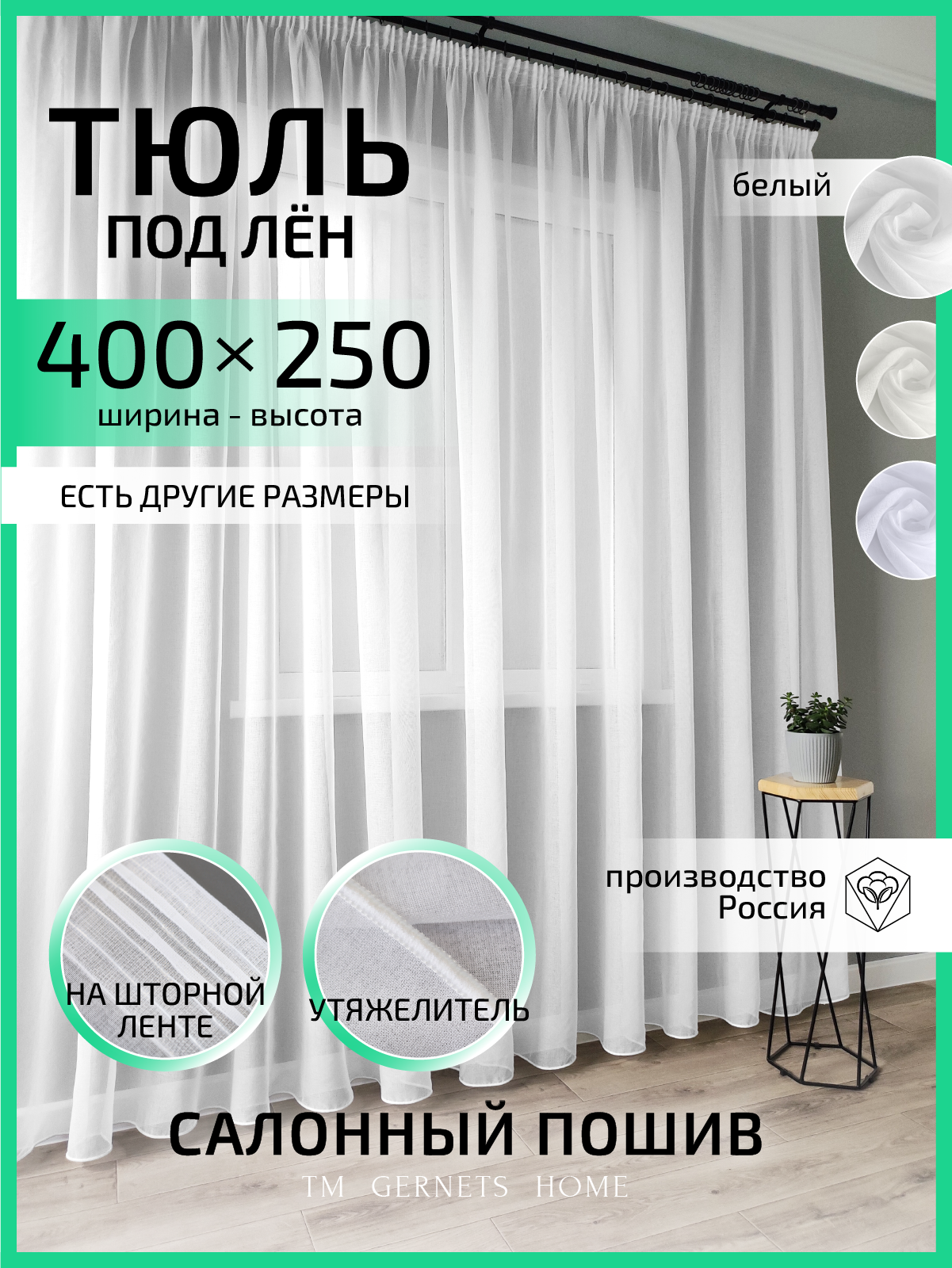 Тюль для гостиной в современном стиле 4х2,5 м, белый с фактурой льна интересное: