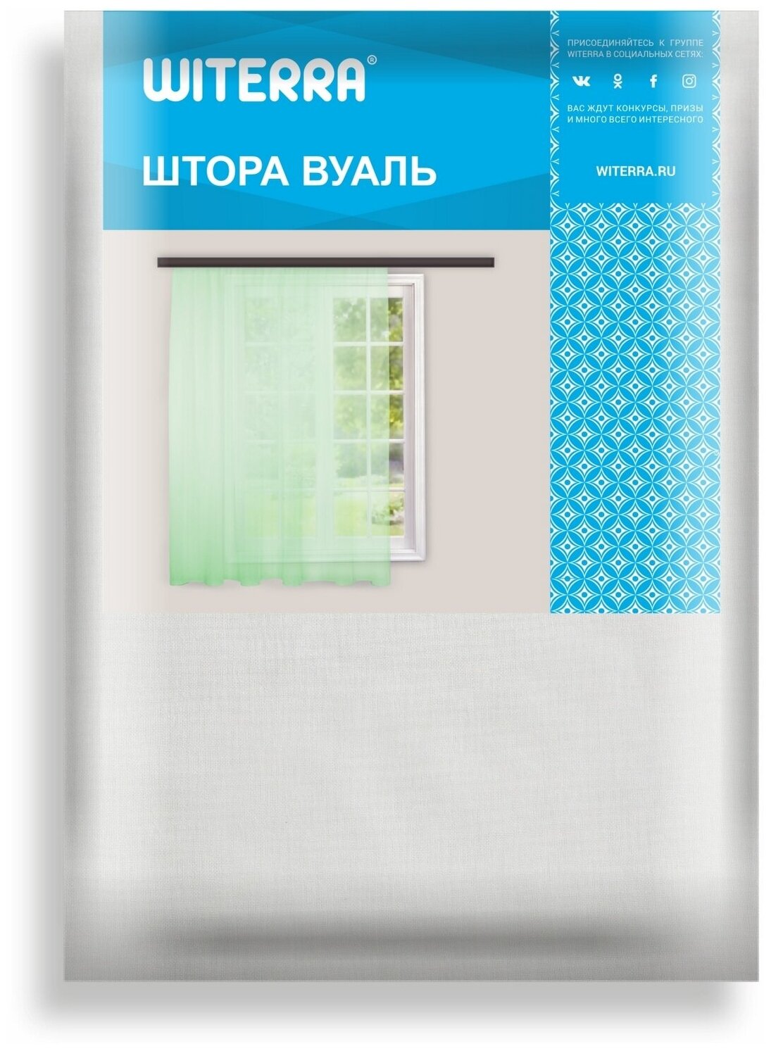 Занавеска тюль Witerra под лен, матовая, на шторной ленте для всех типов карнизов, 500х275 см, зеленая, 1 шт.