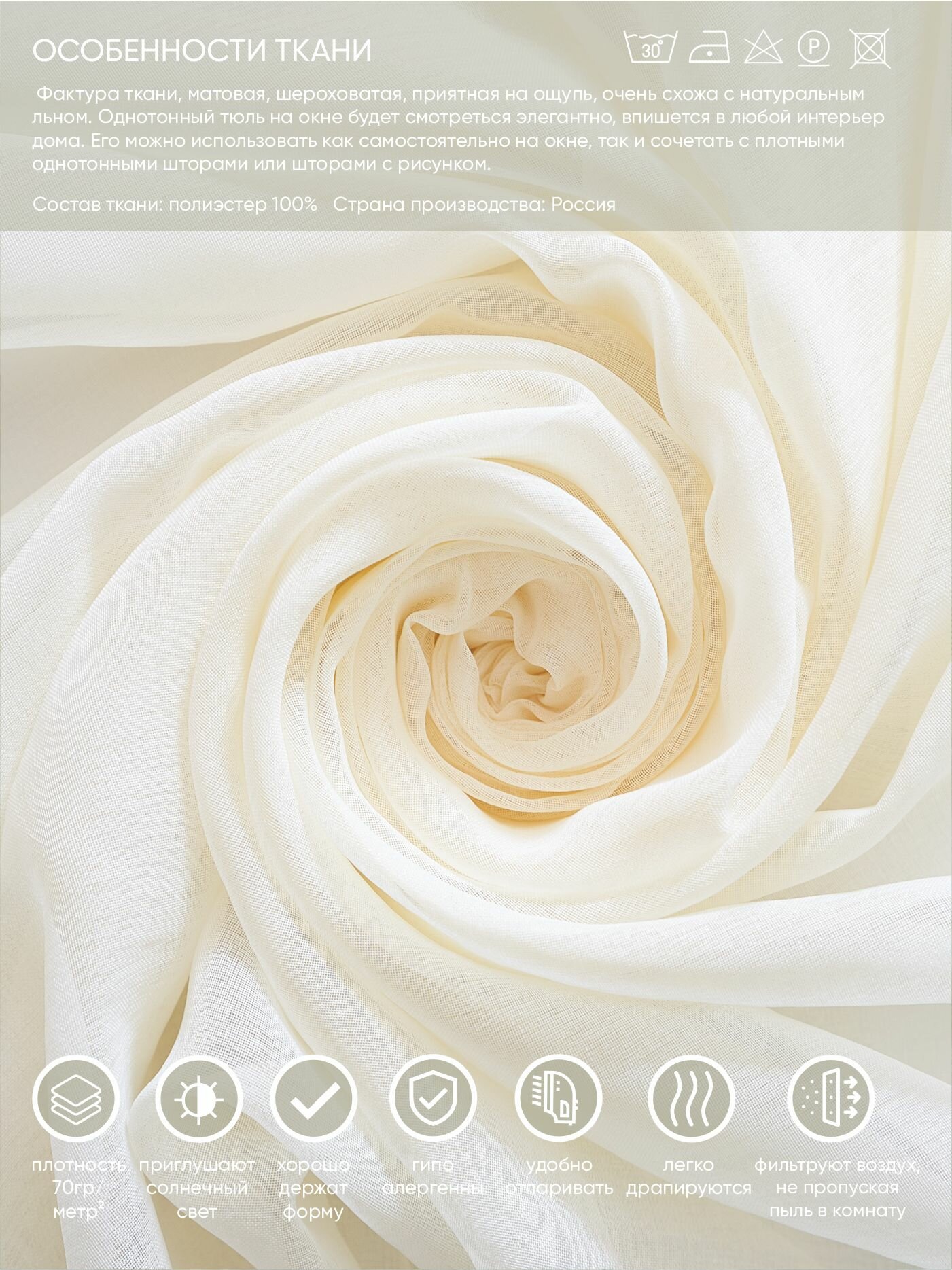 СохранитьЗанавеска тюль Witerra под лен, матовая, на шторной ленте, 500х275 см, шампань, 1 шт. интересное: