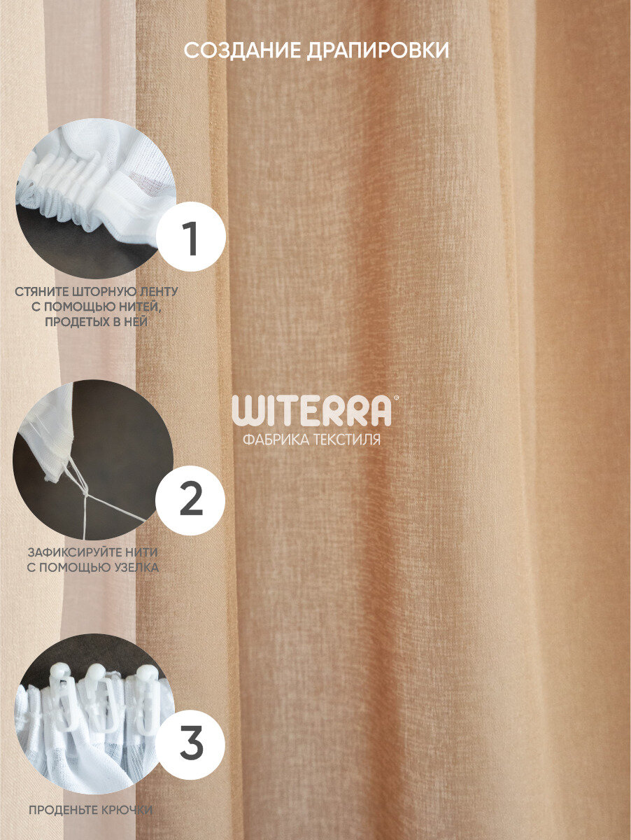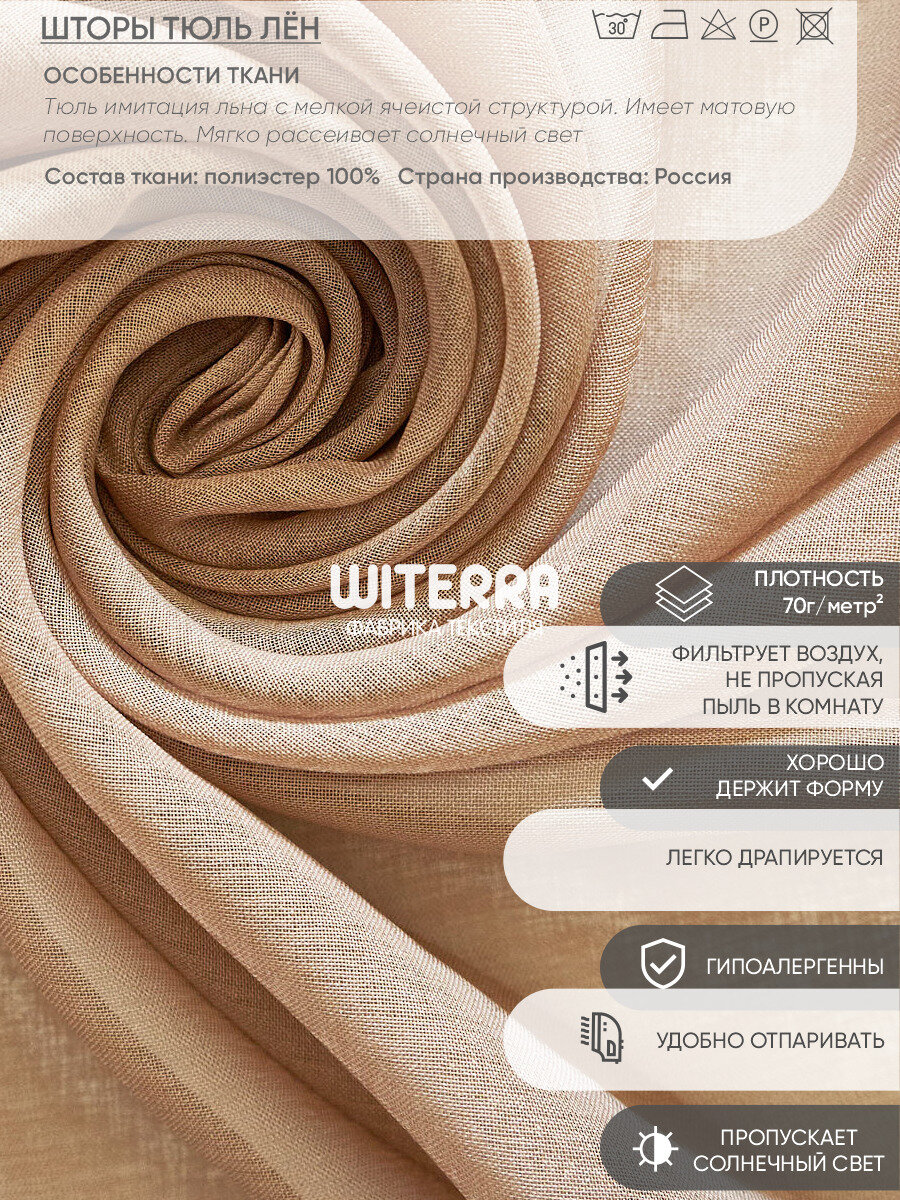 Штора тюль Witerra под лен, на штoрной ленте, 150х275 см, какао, 1 шт.