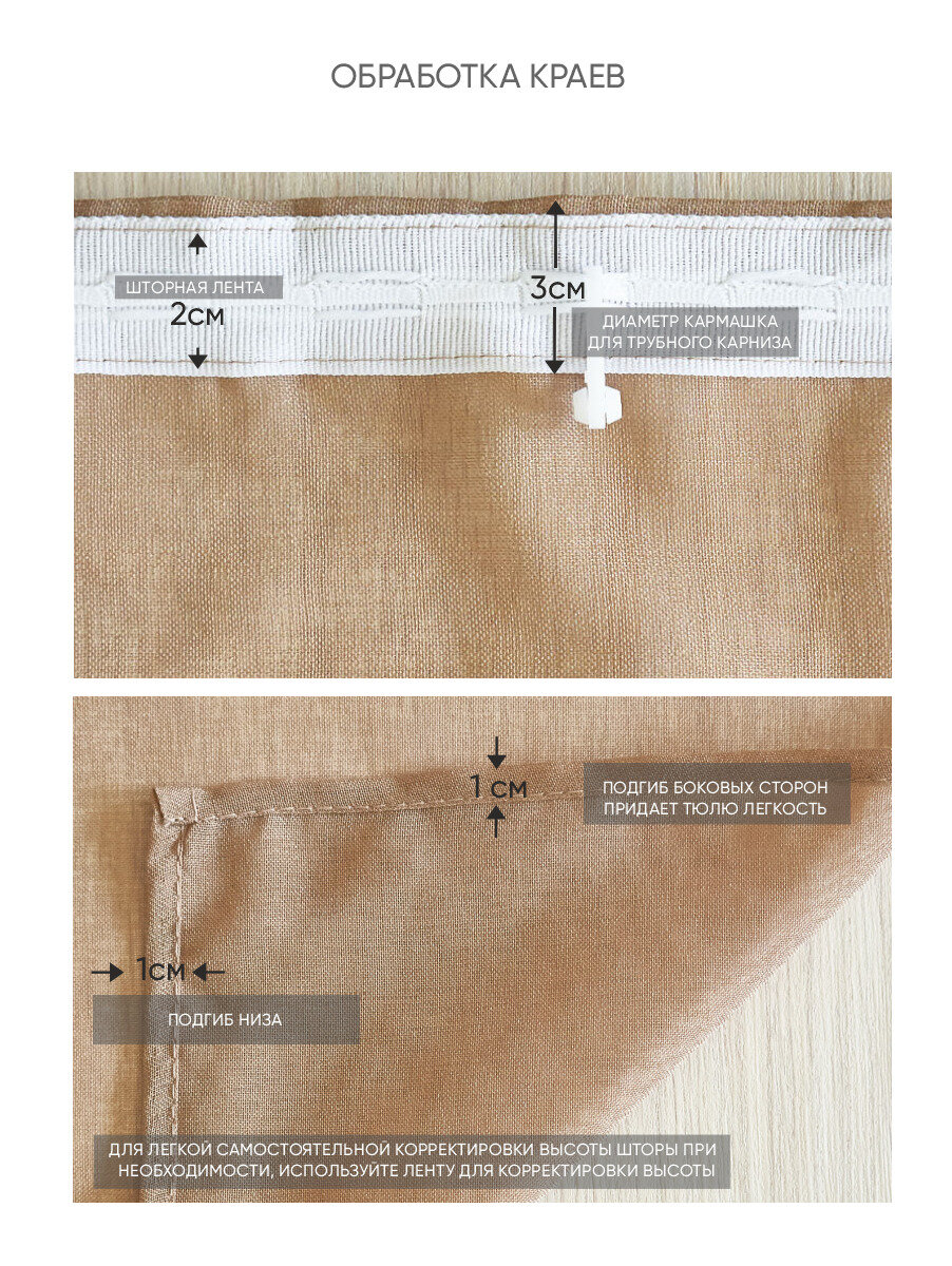 Штора-тюль Лен 200х275см, какао, пэ100%, место назначения: в гостиную