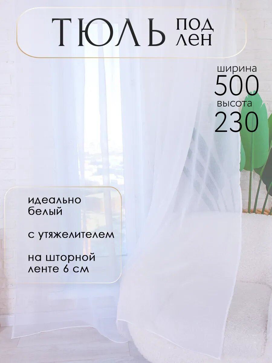 Тюль Лен с утяжелителем / Высота 250см Ширина 500см (2.5 на 5.0 м ) Тюль для кухни /Тюль в гостиную /Тюль в детскую /шторы