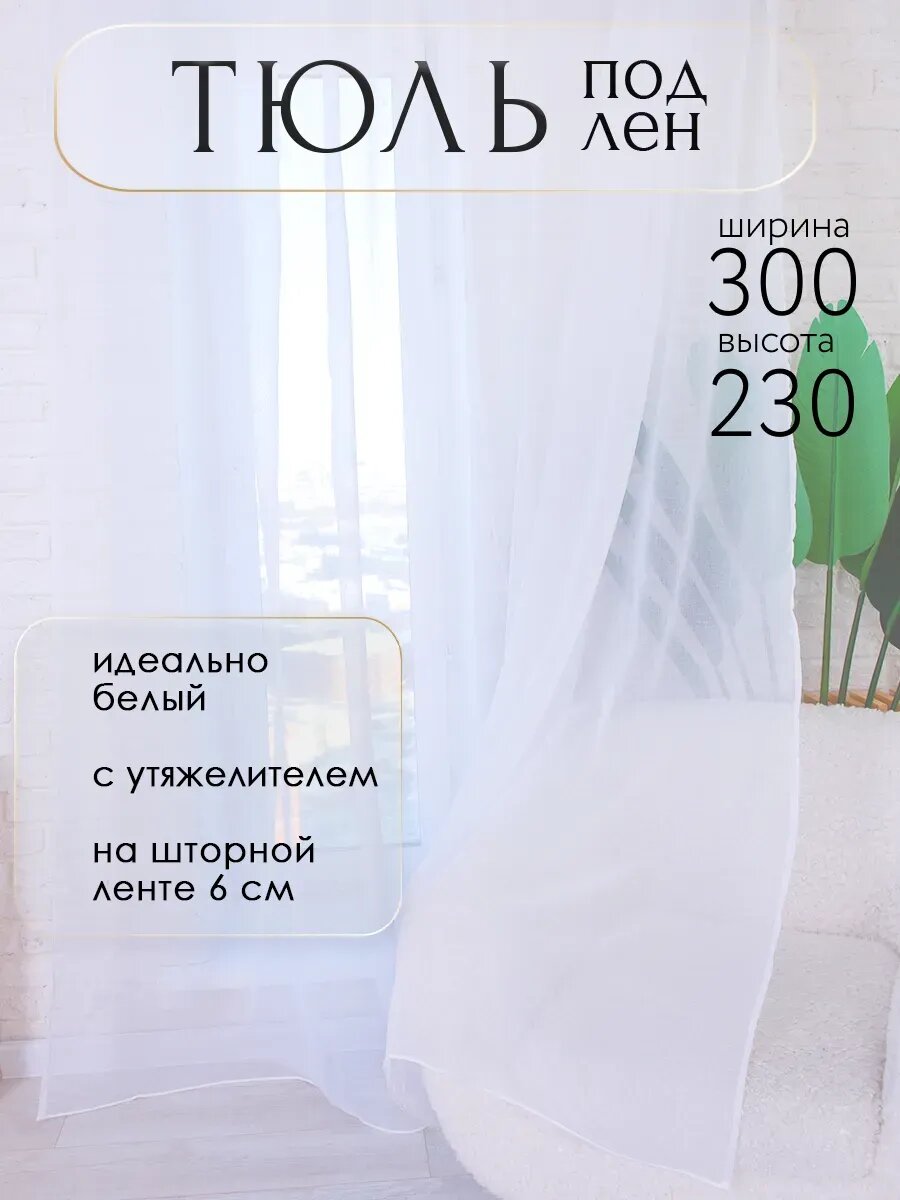Купить Тюль Мир Штор, под лен с утяжелителем, белый, на шторной ленте, ширина 3м