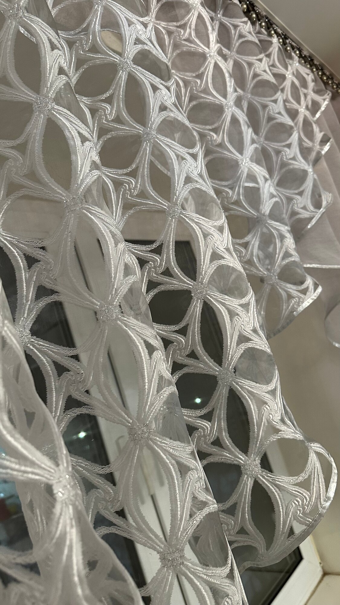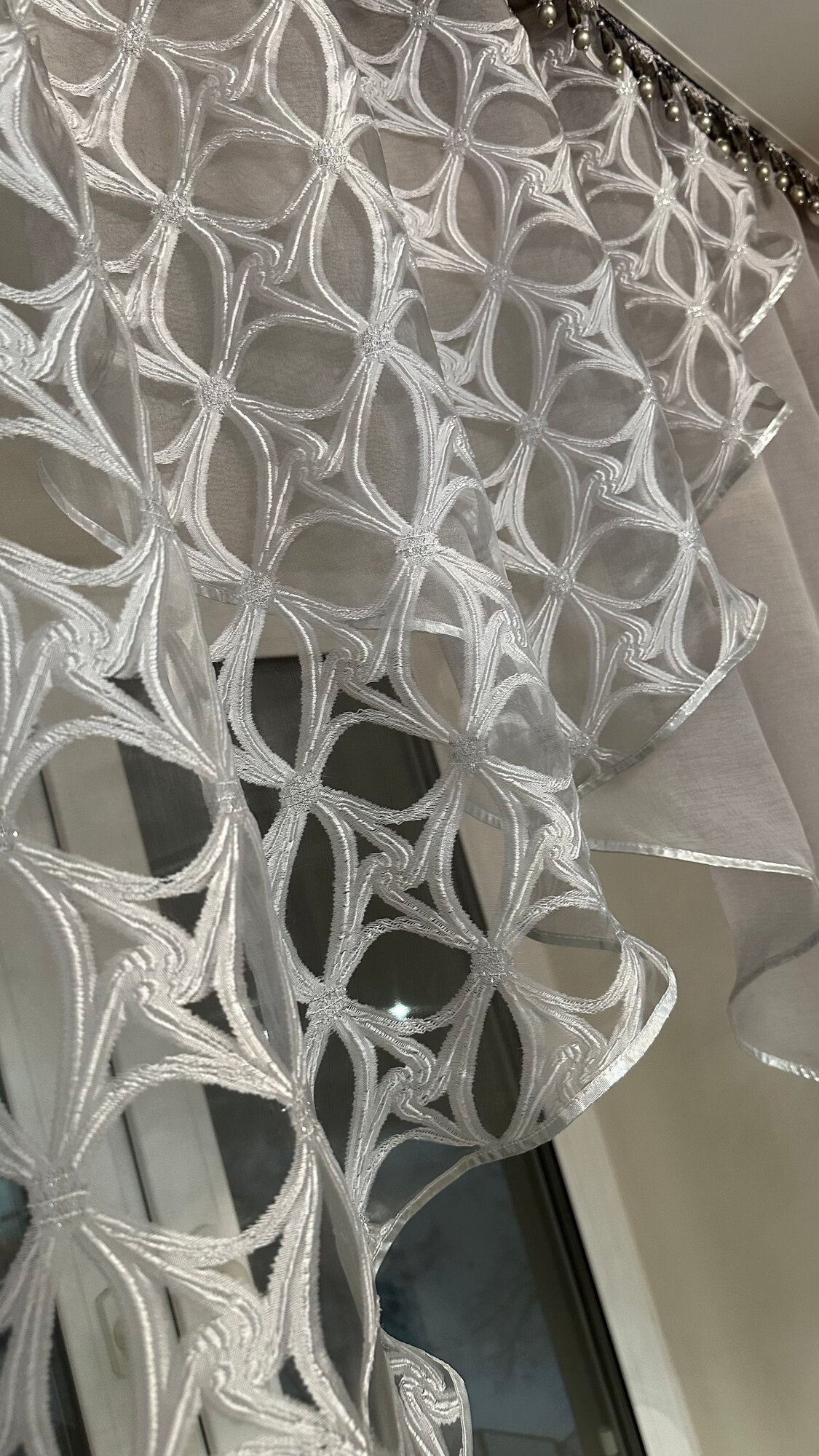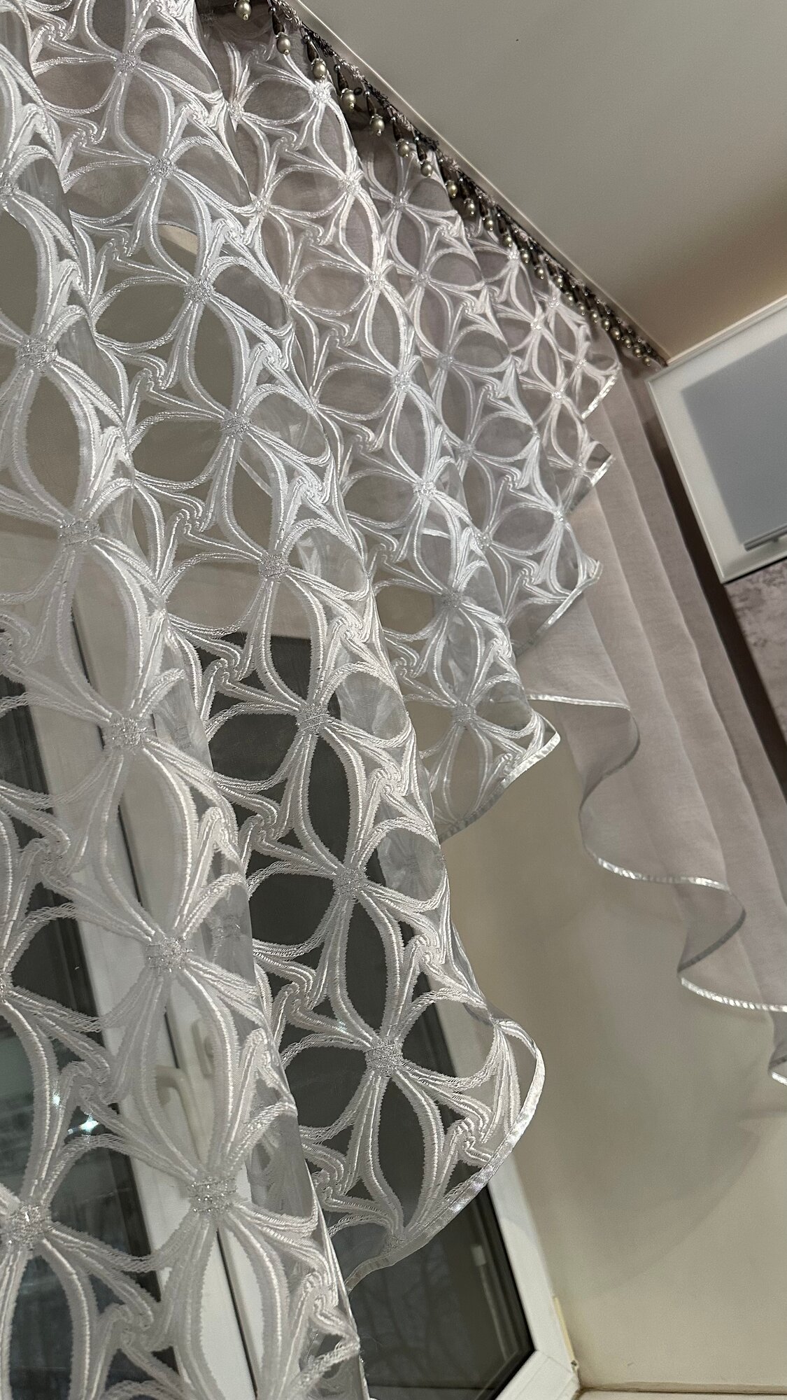 Кухонная шторка белые вензеля, ширина 3м, высота 1,7м