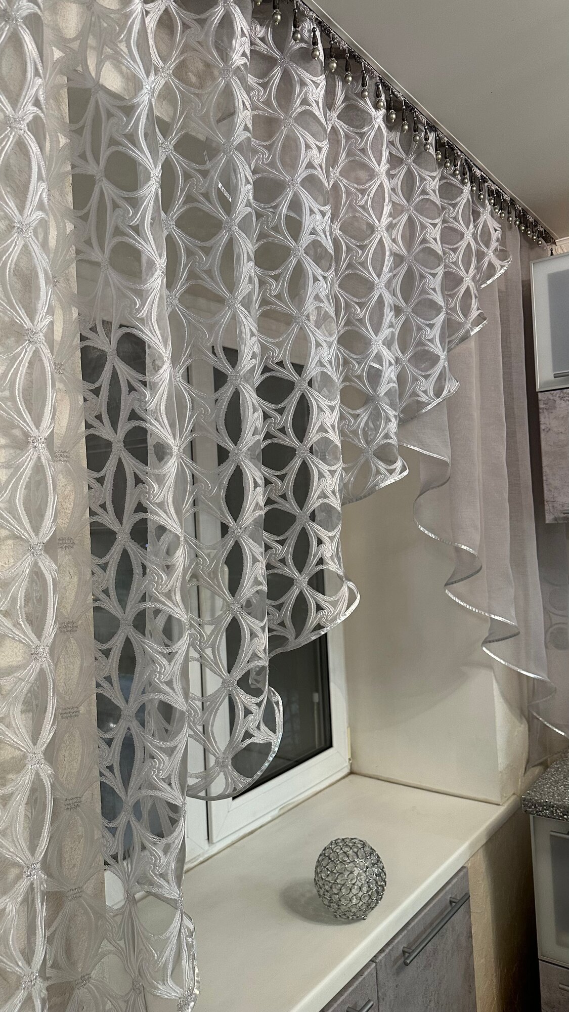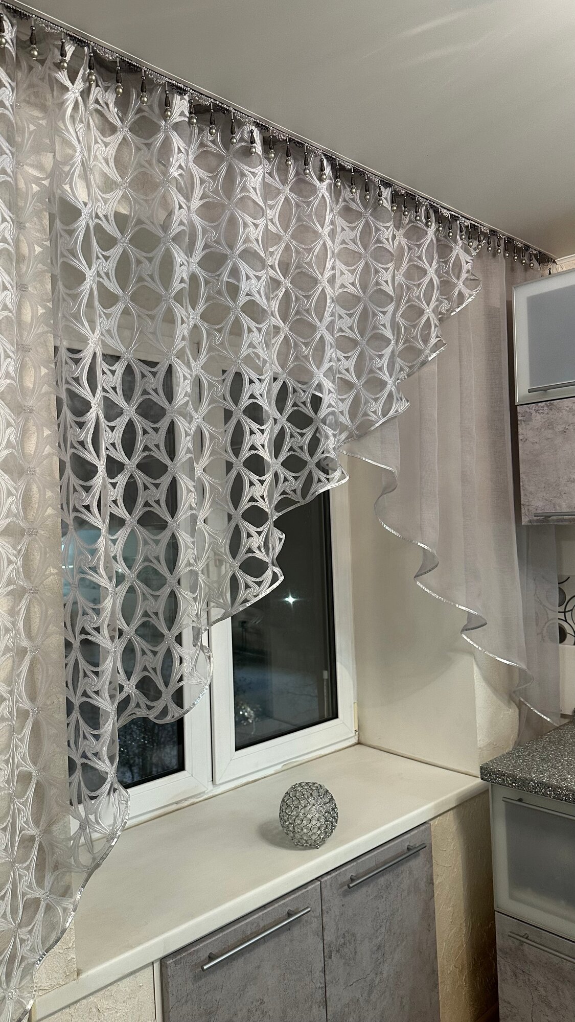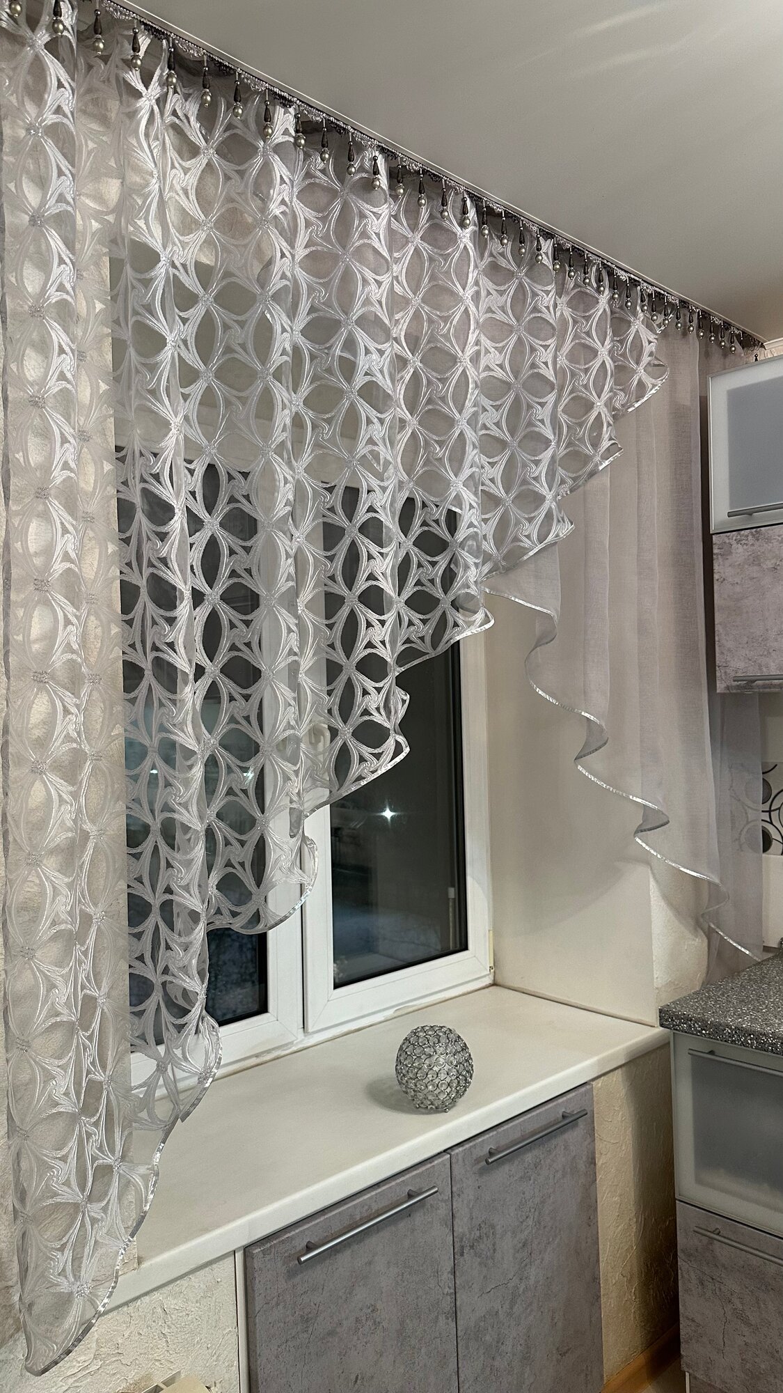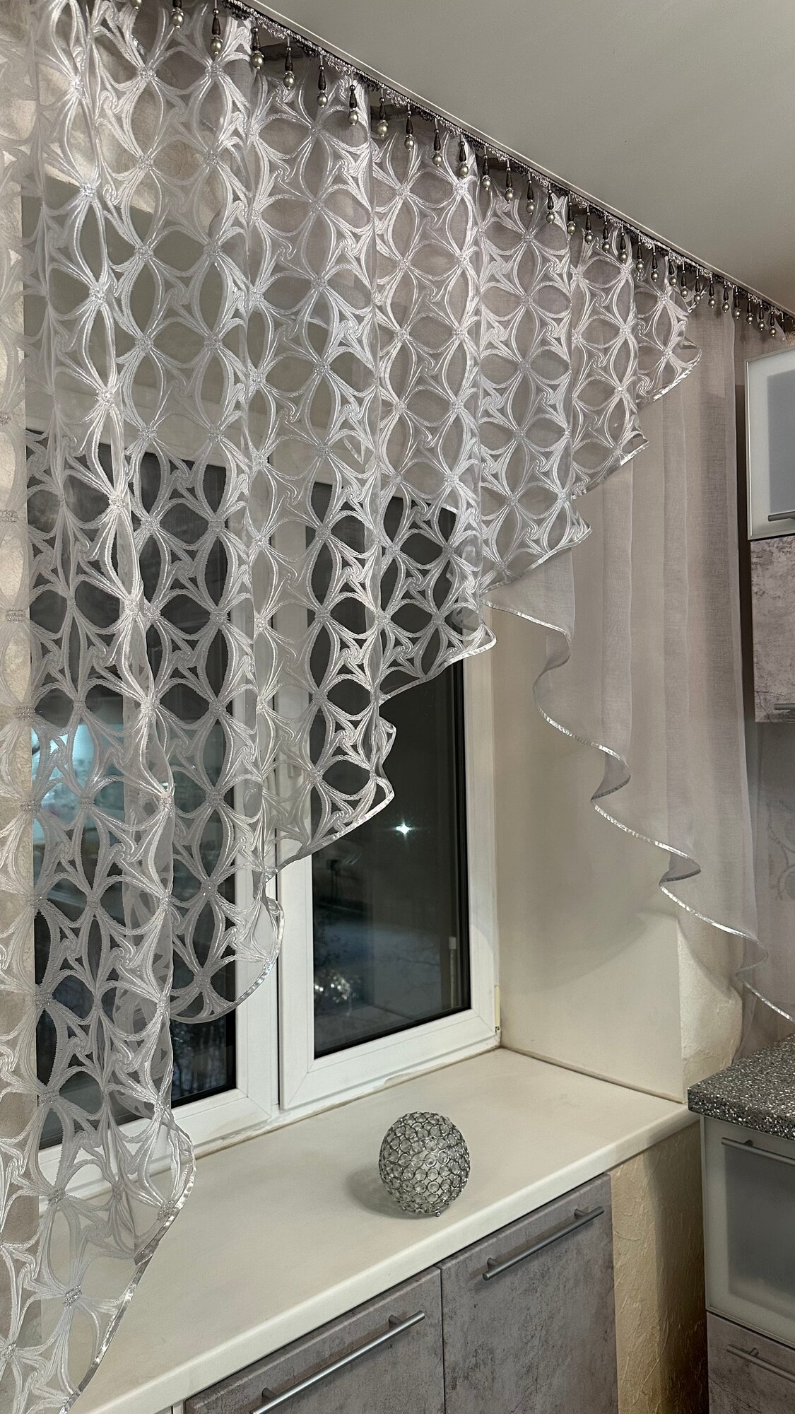 Купить Кухонная шторка серая с серебром, ширина 3м, высота 1,7м