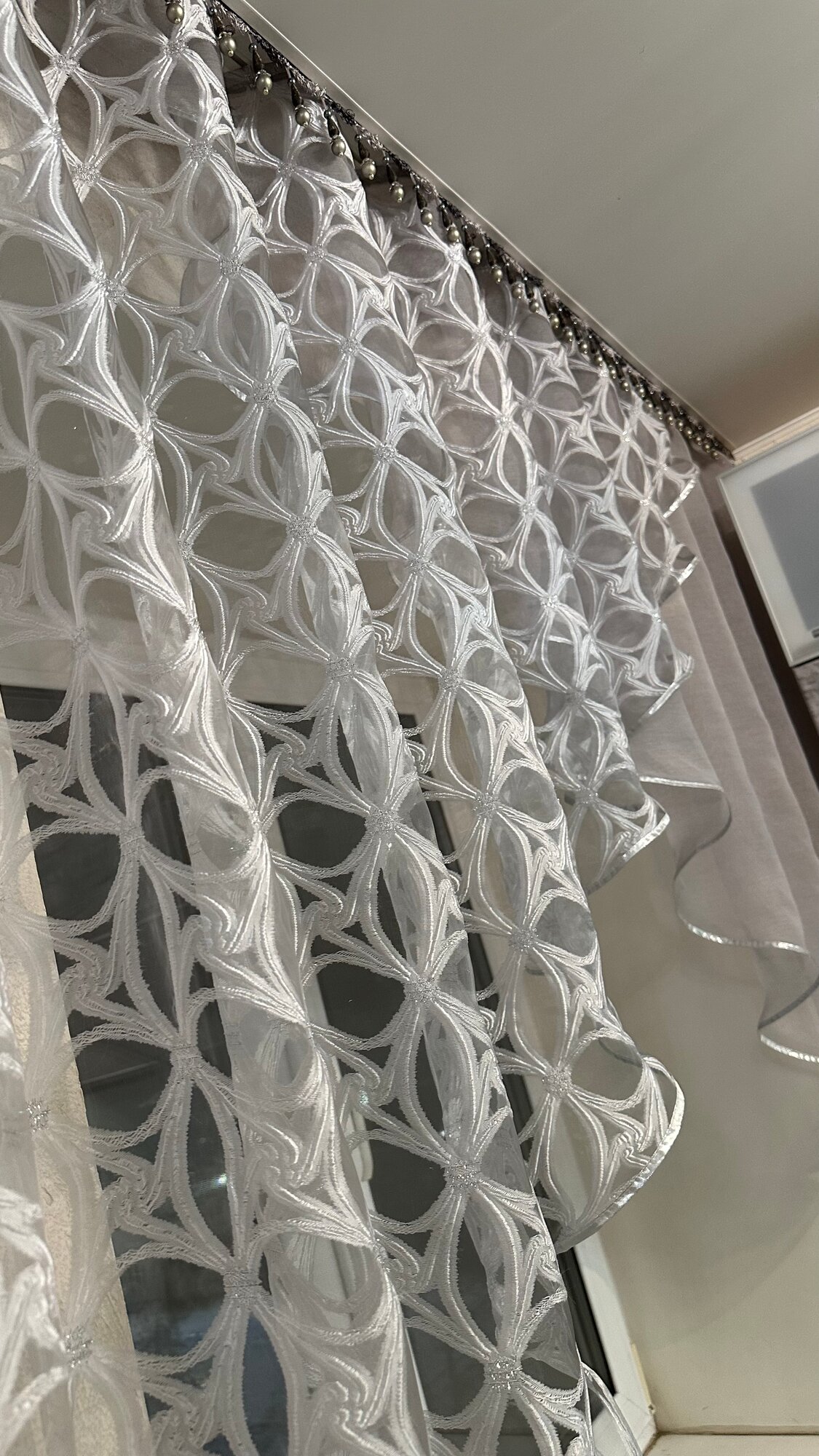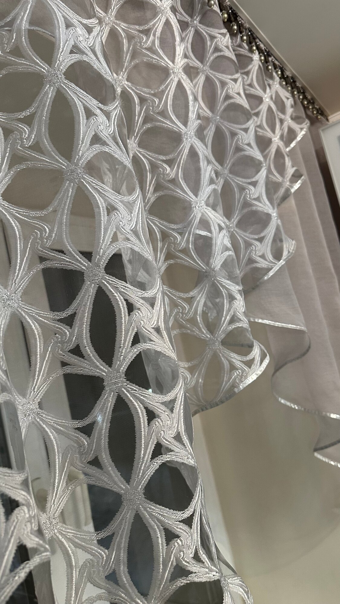 Кухонная шторка ирисы серые, ширина 3м, высота 1,7м