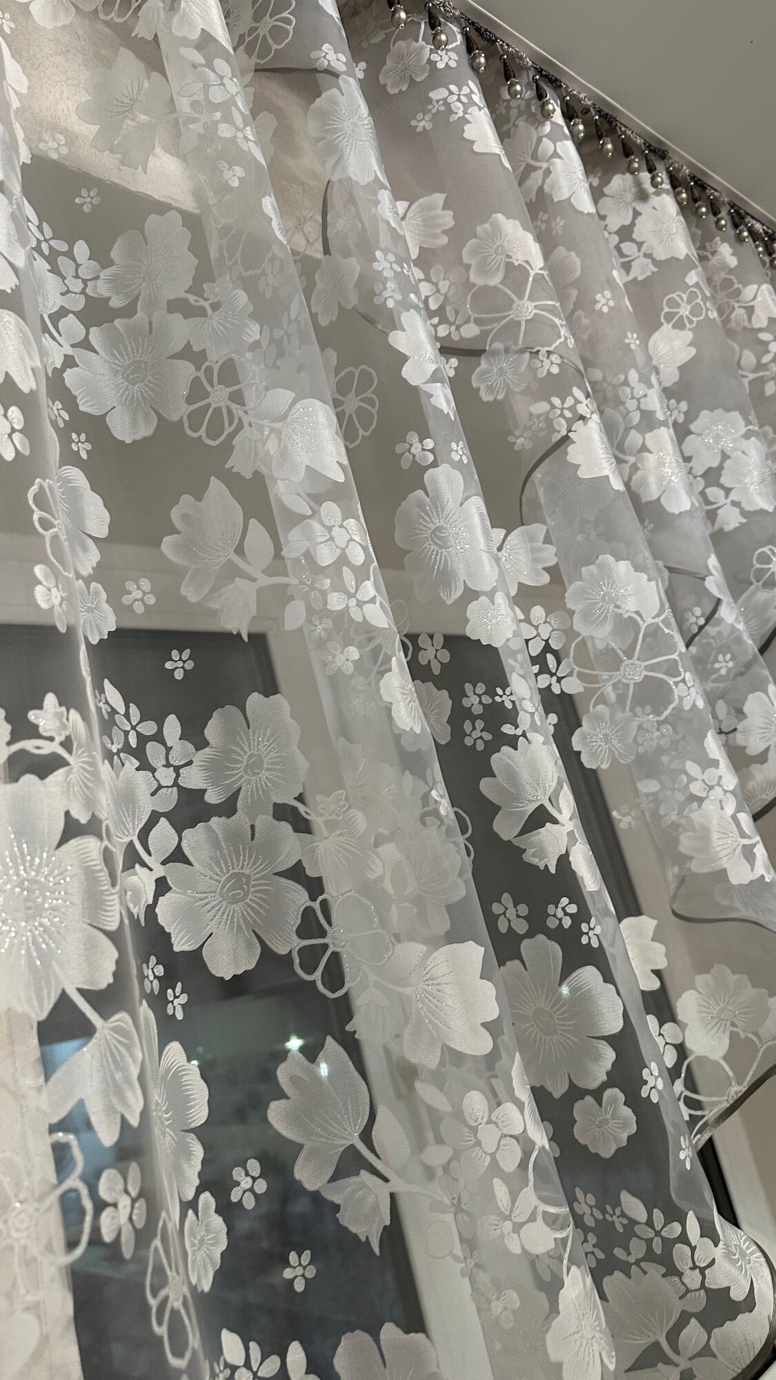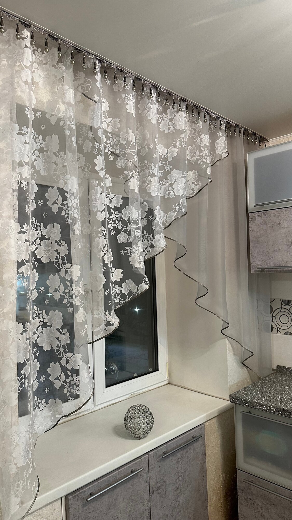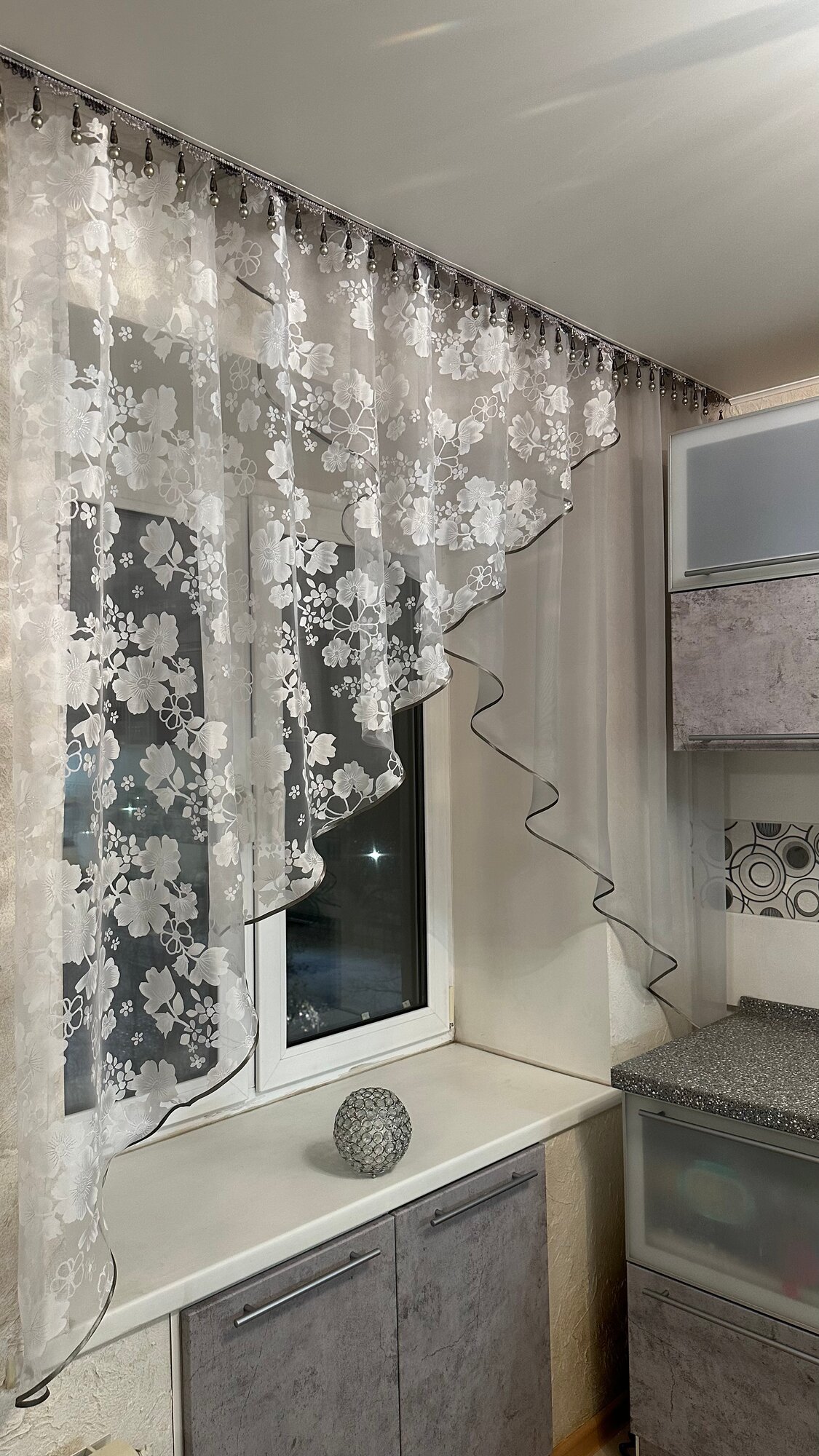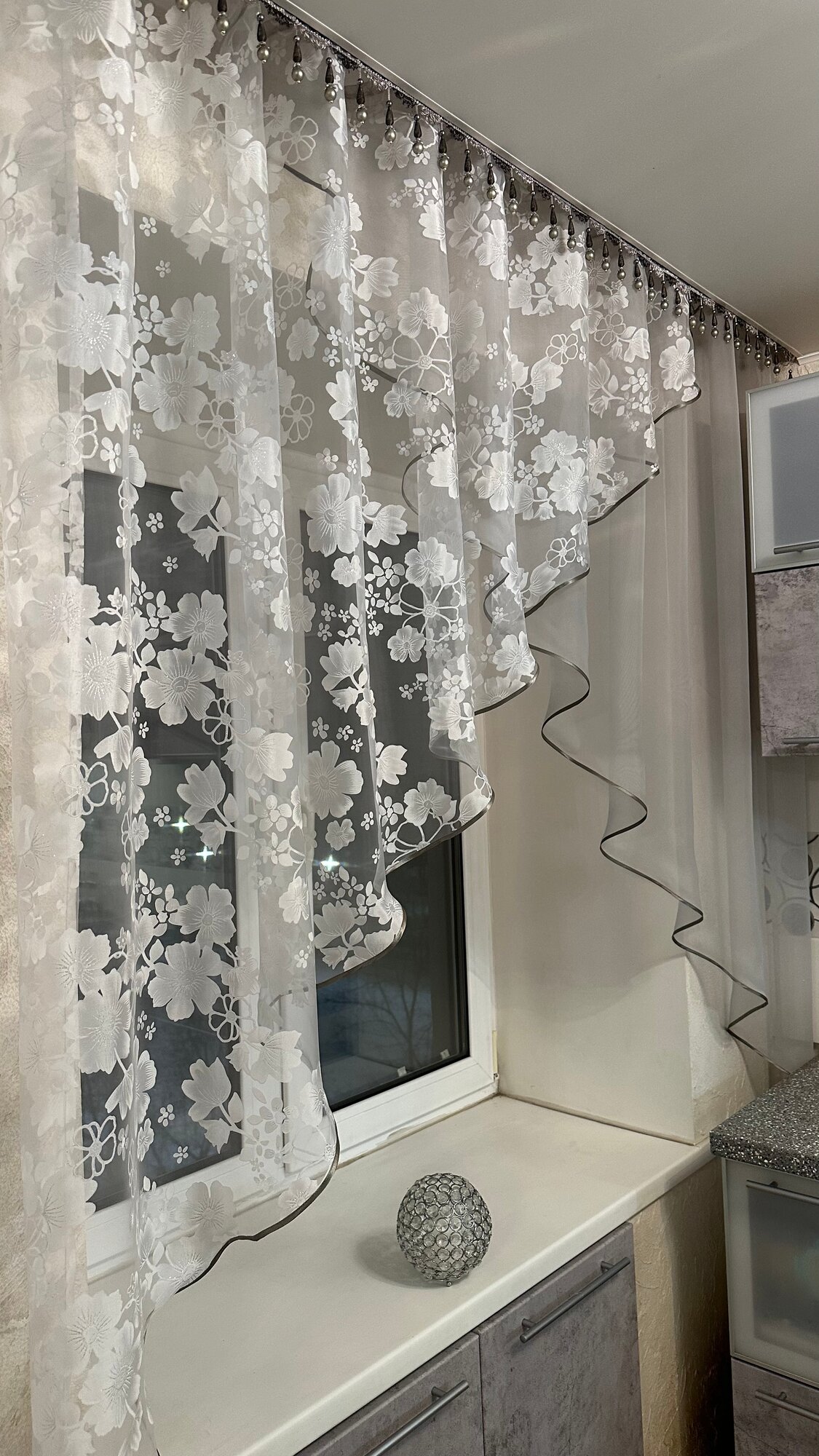 СохранитьКухонная шторка серая с белыми цветами, ширина 3м, высота 1,7м интересное: