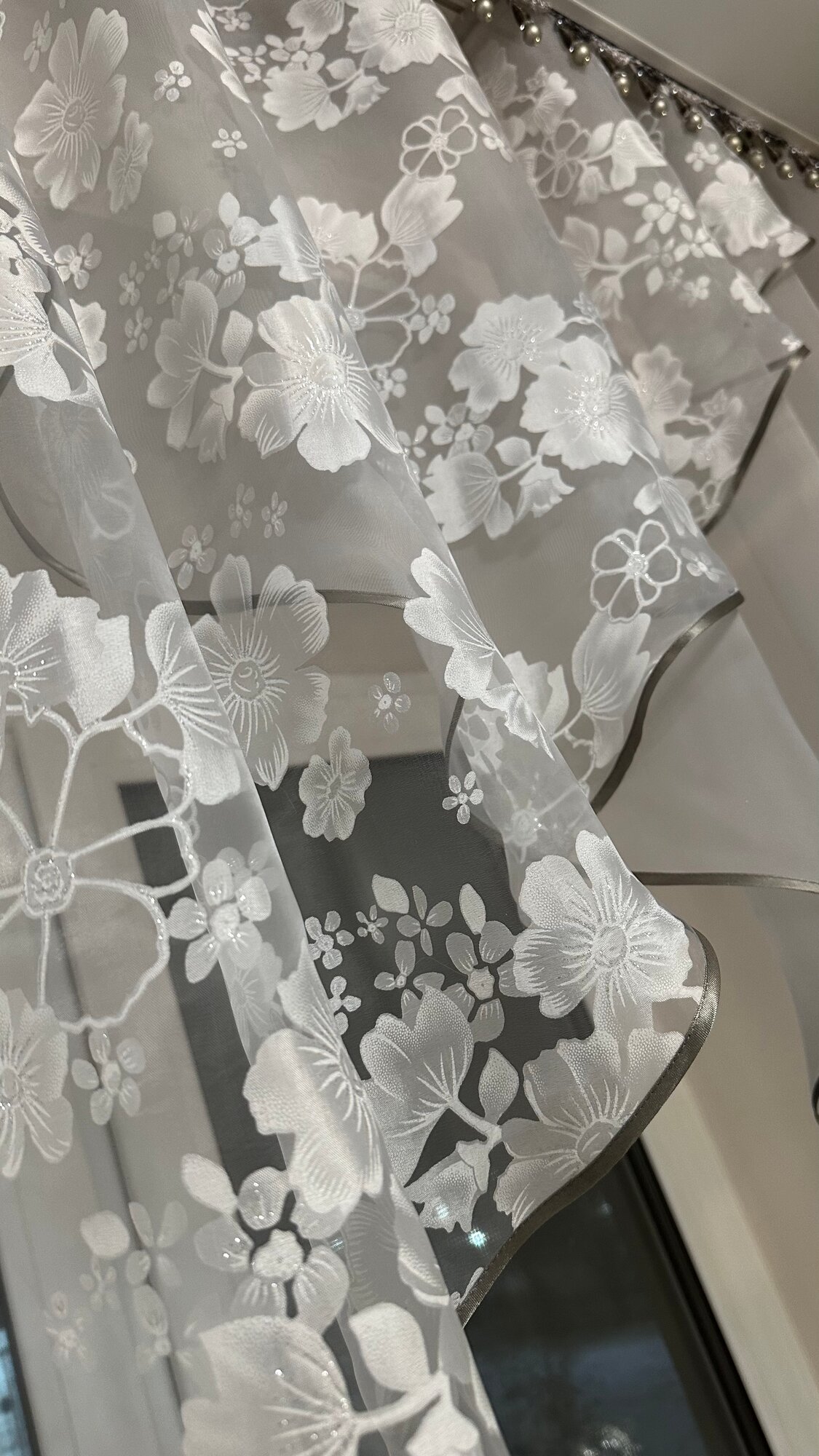 Купить Кухонная шторка серая с белыми цветами, ширина 3м, высота 1,7м