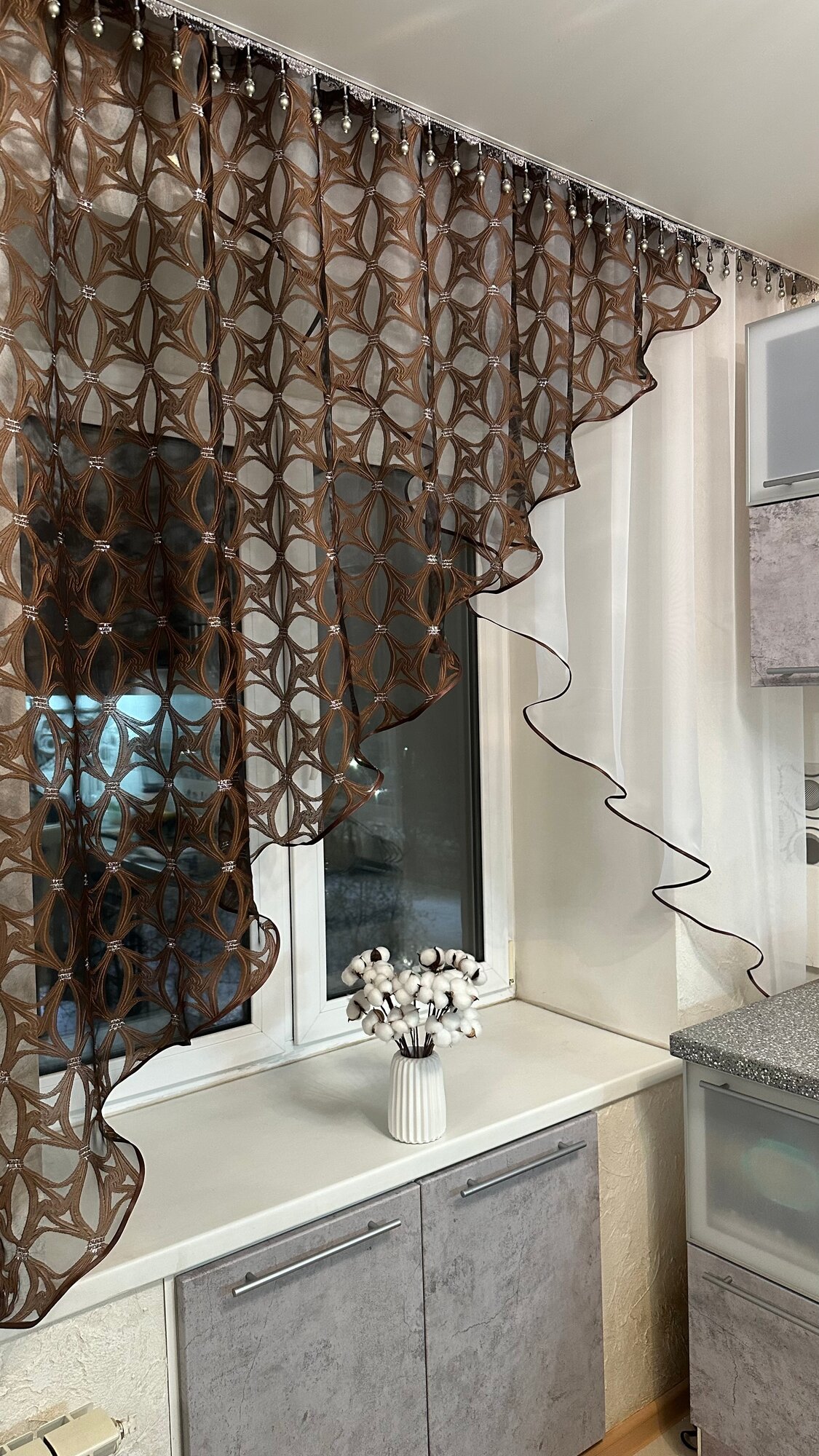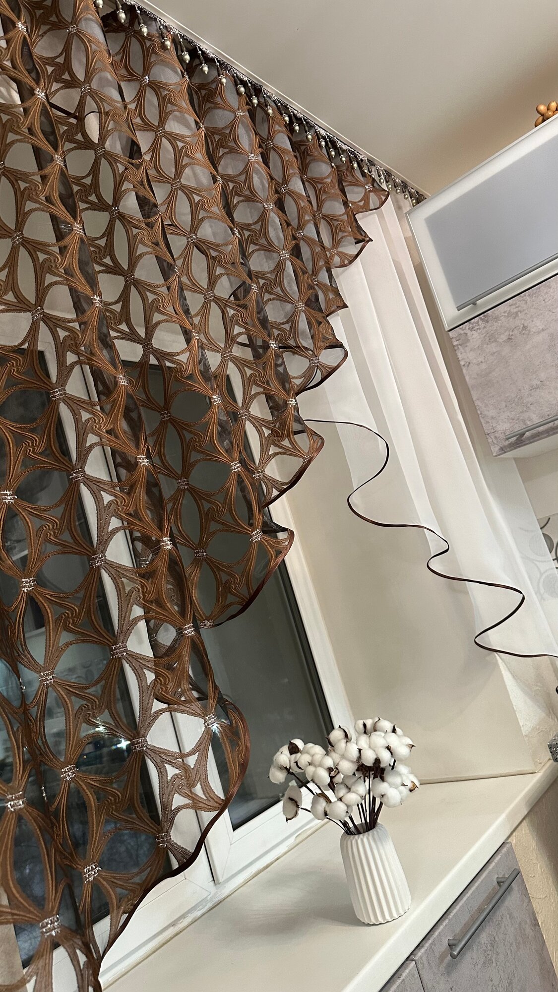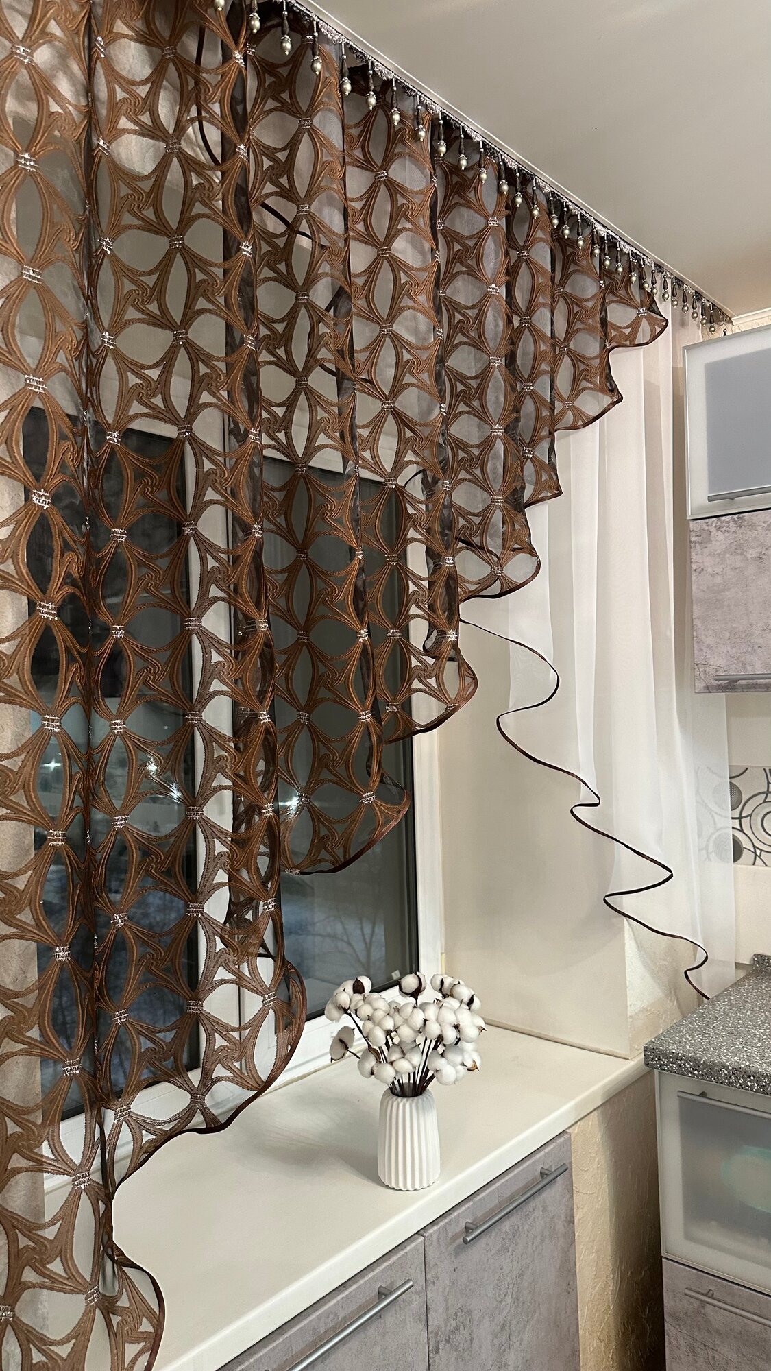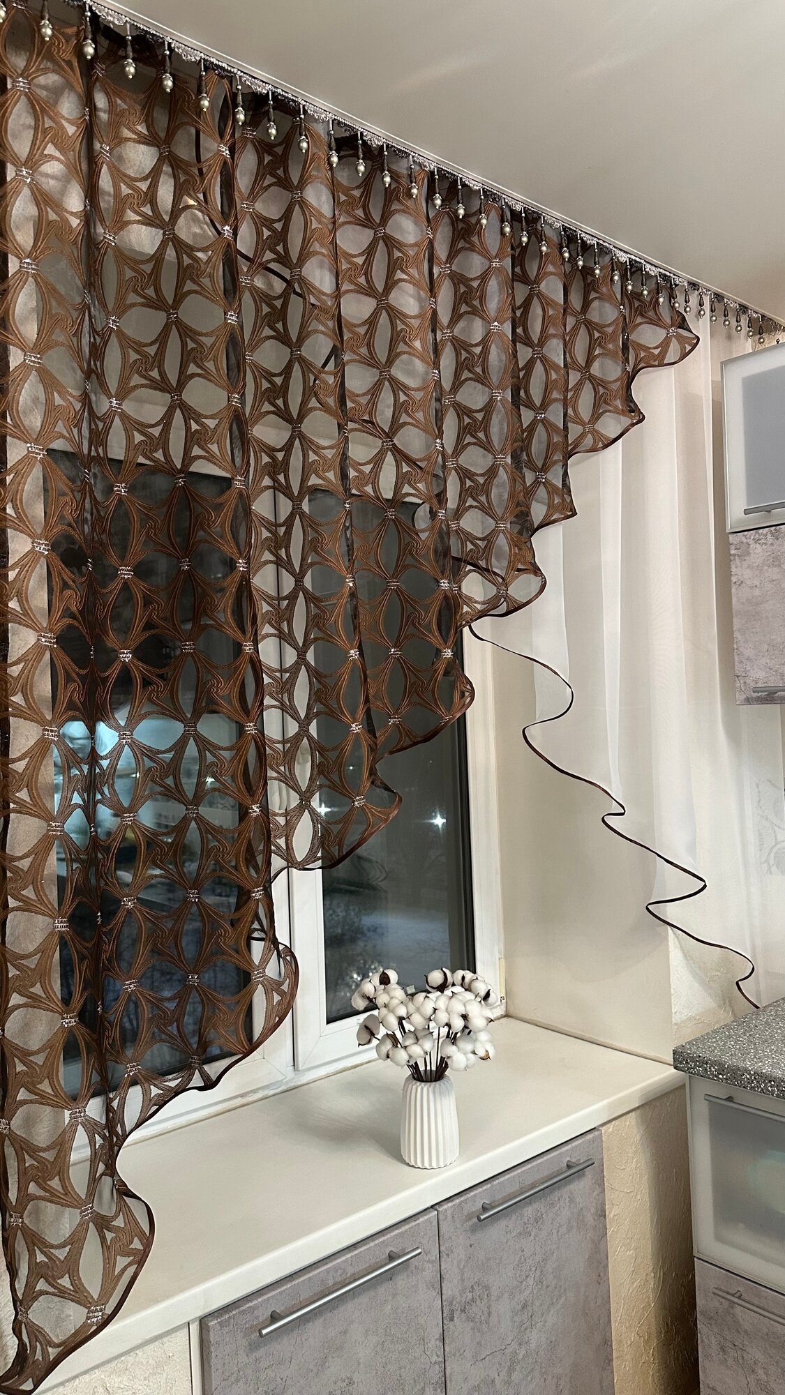 СохранитьКухонная шторка черно-коричневая с белым, ширина 3м, высота 1,7м интересное: