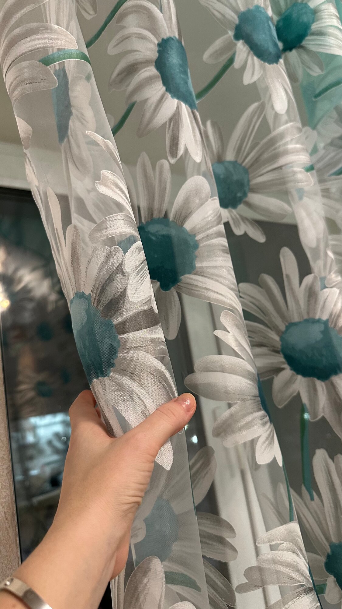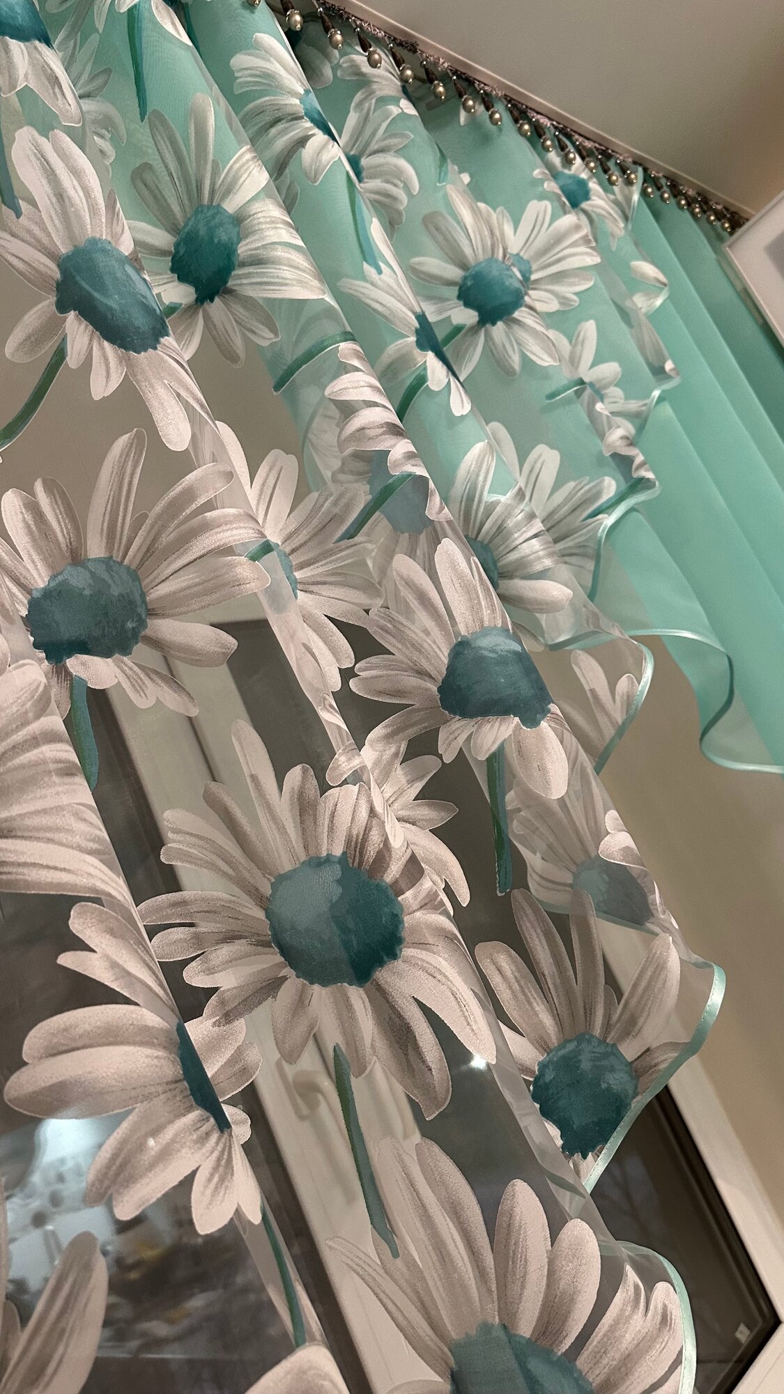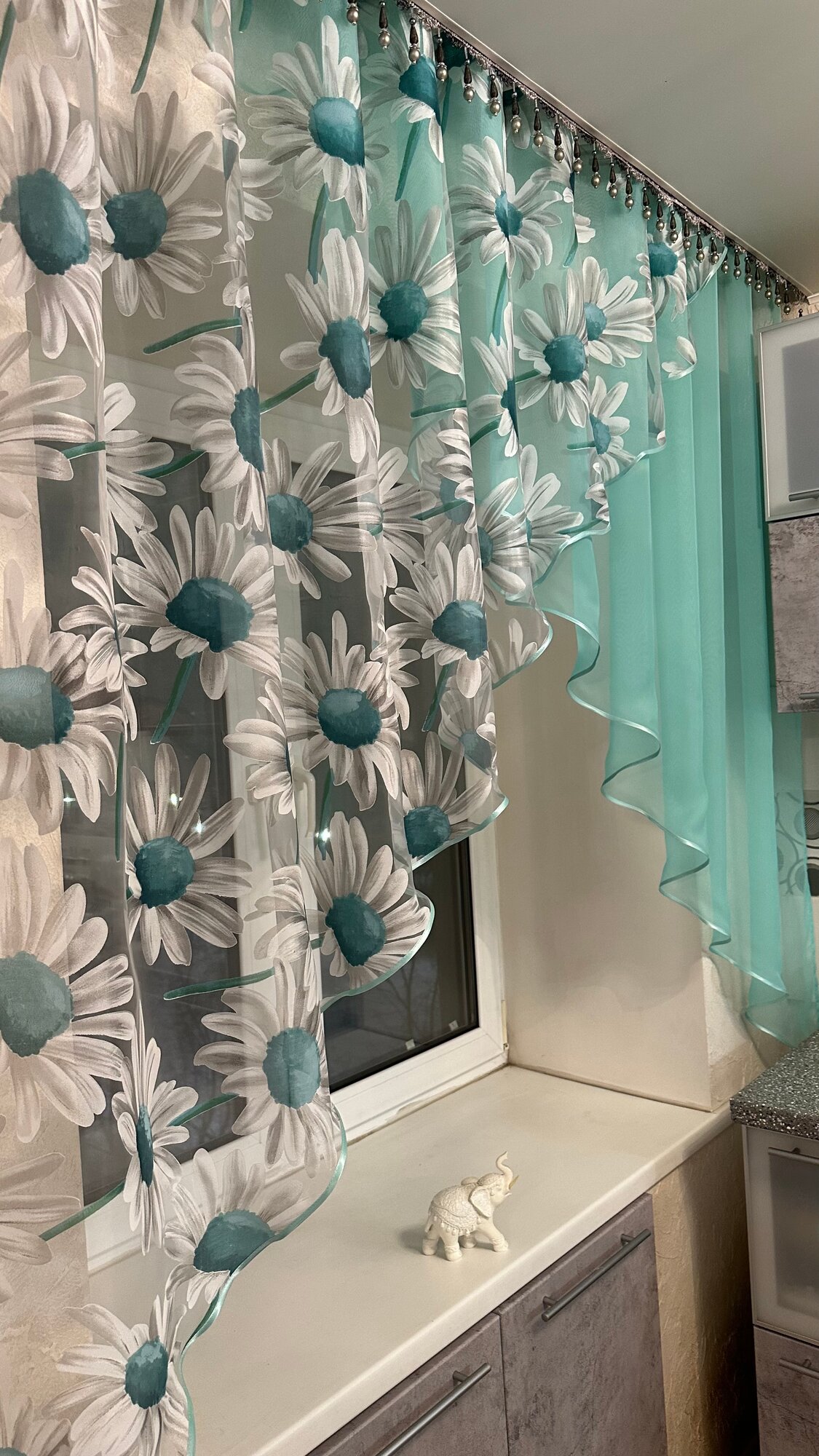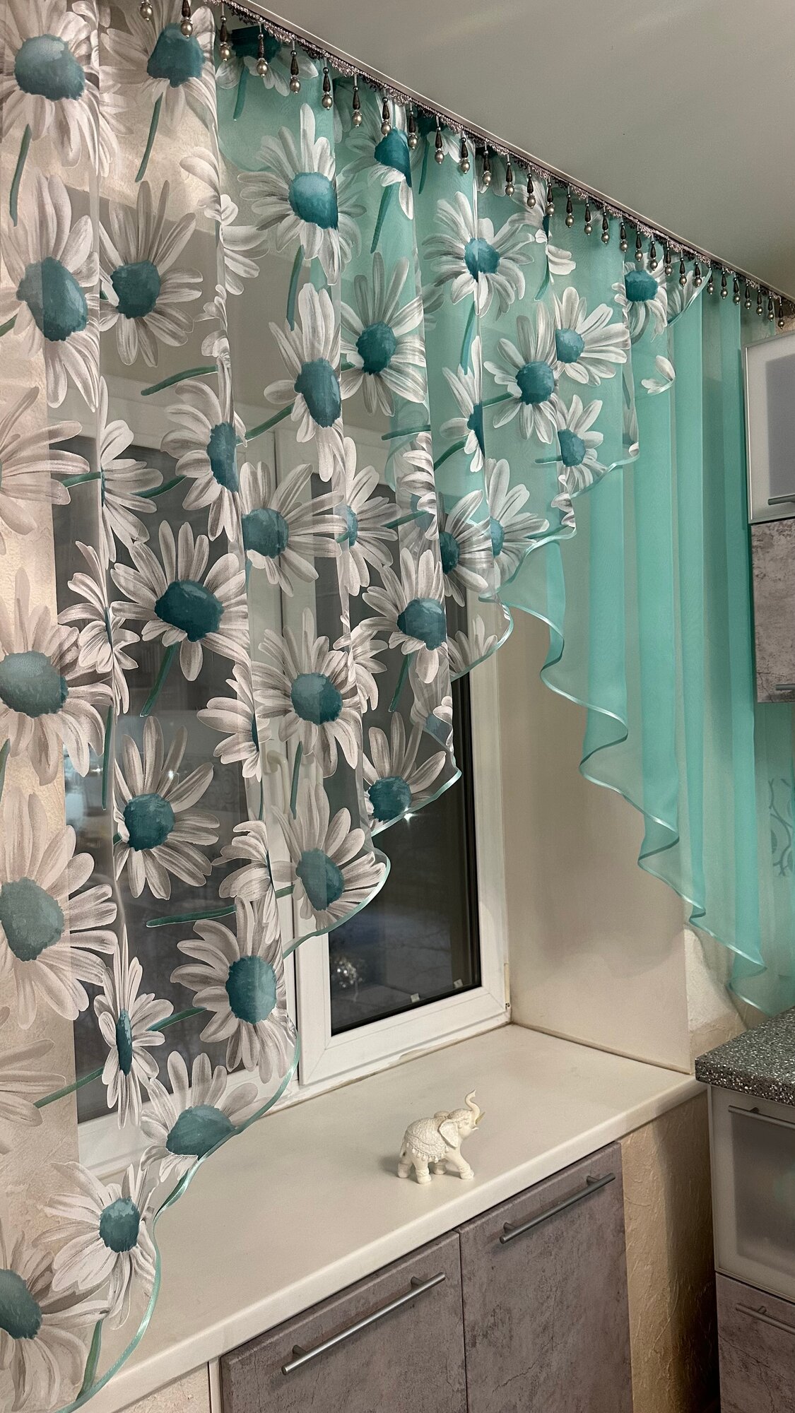 СохранитьКухонная шторка ромашка ярко-бирюзовая, ширина 3м, высота 1,7м интересное: