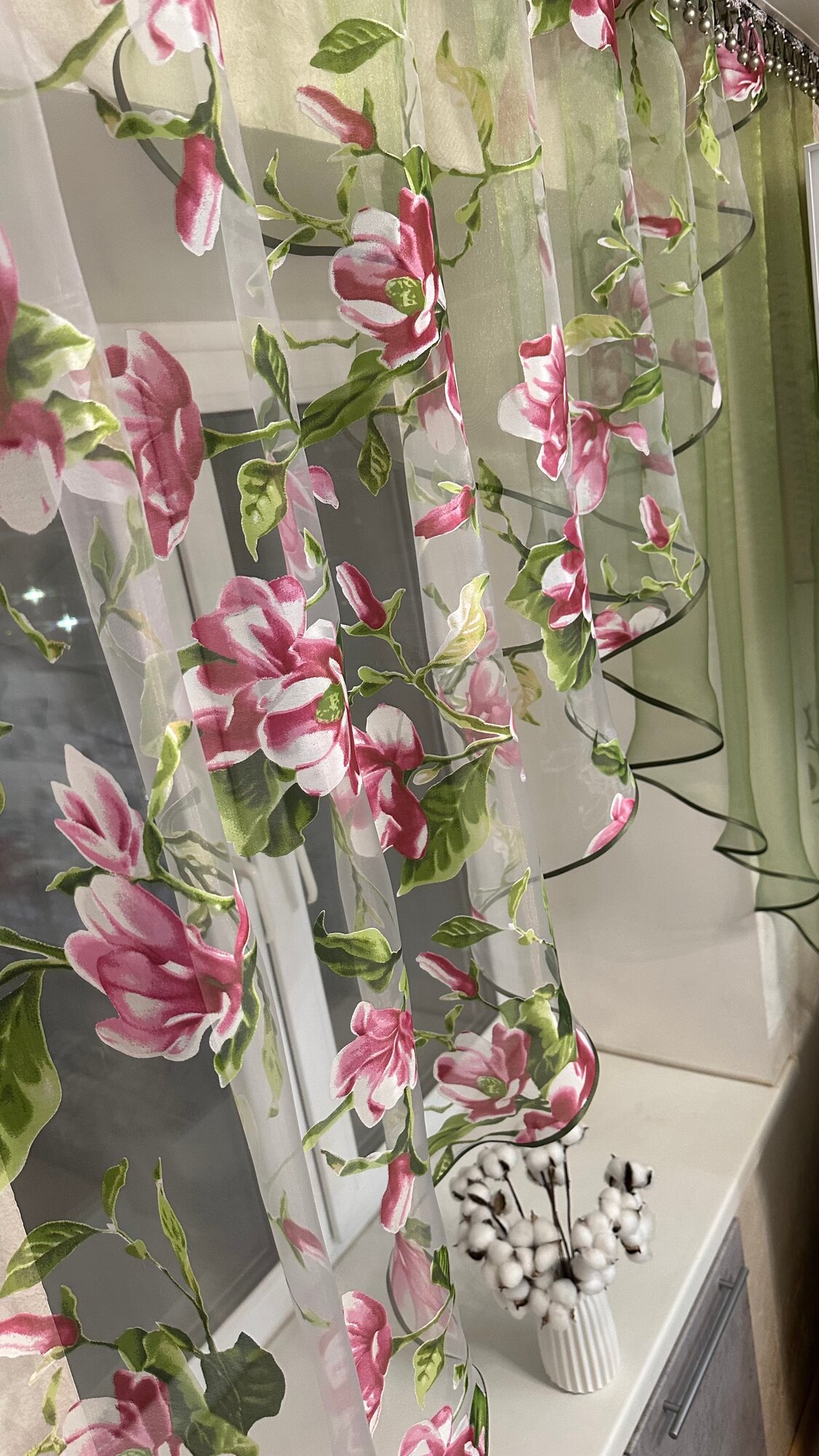 Кухонная шторка сакура розовая, ширина 3м, высота 1,7м
