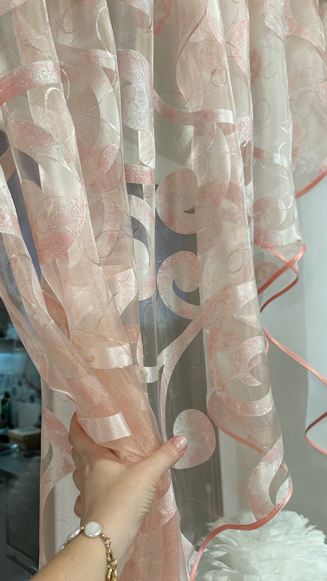 Кухонная шторка сакура розовая, ширина 3м, высота 1,7м