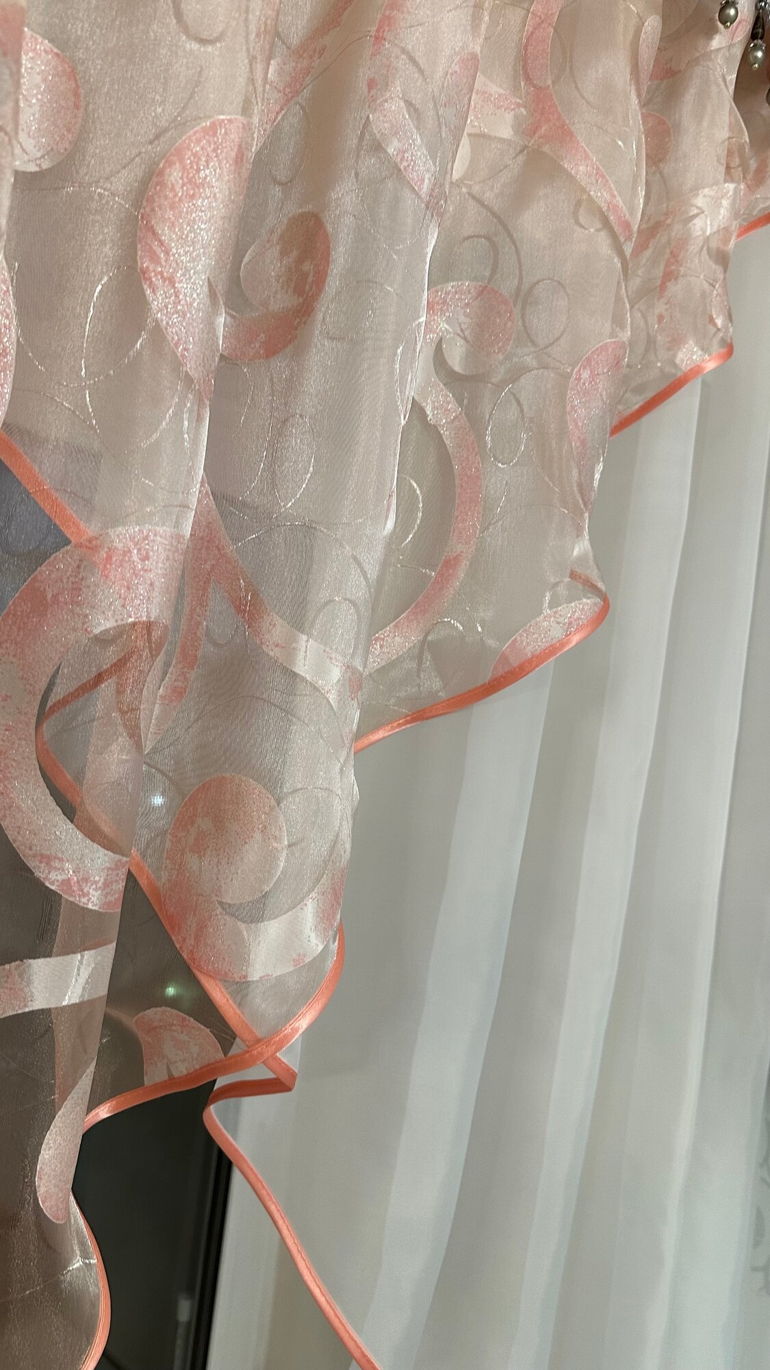 Кухонная шторка пионы персик, ширина 3м, высота 1,7м