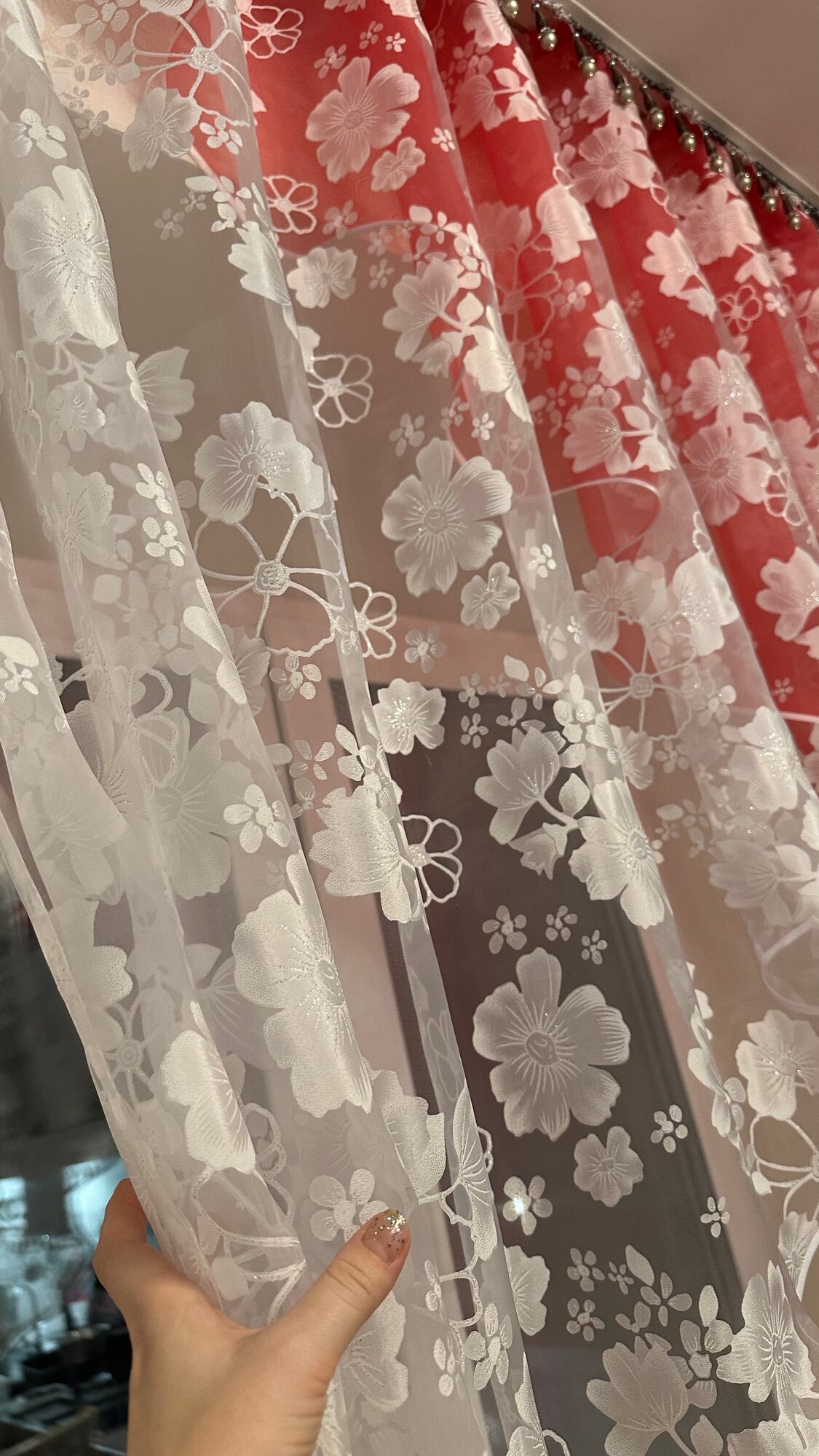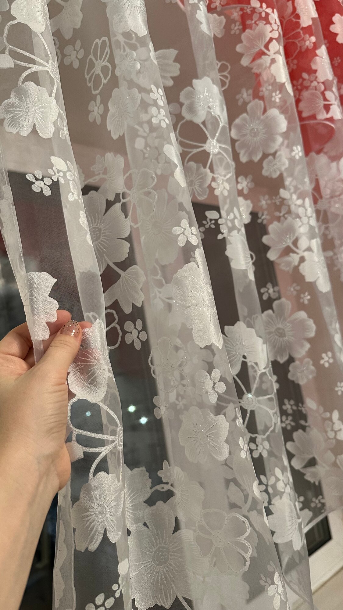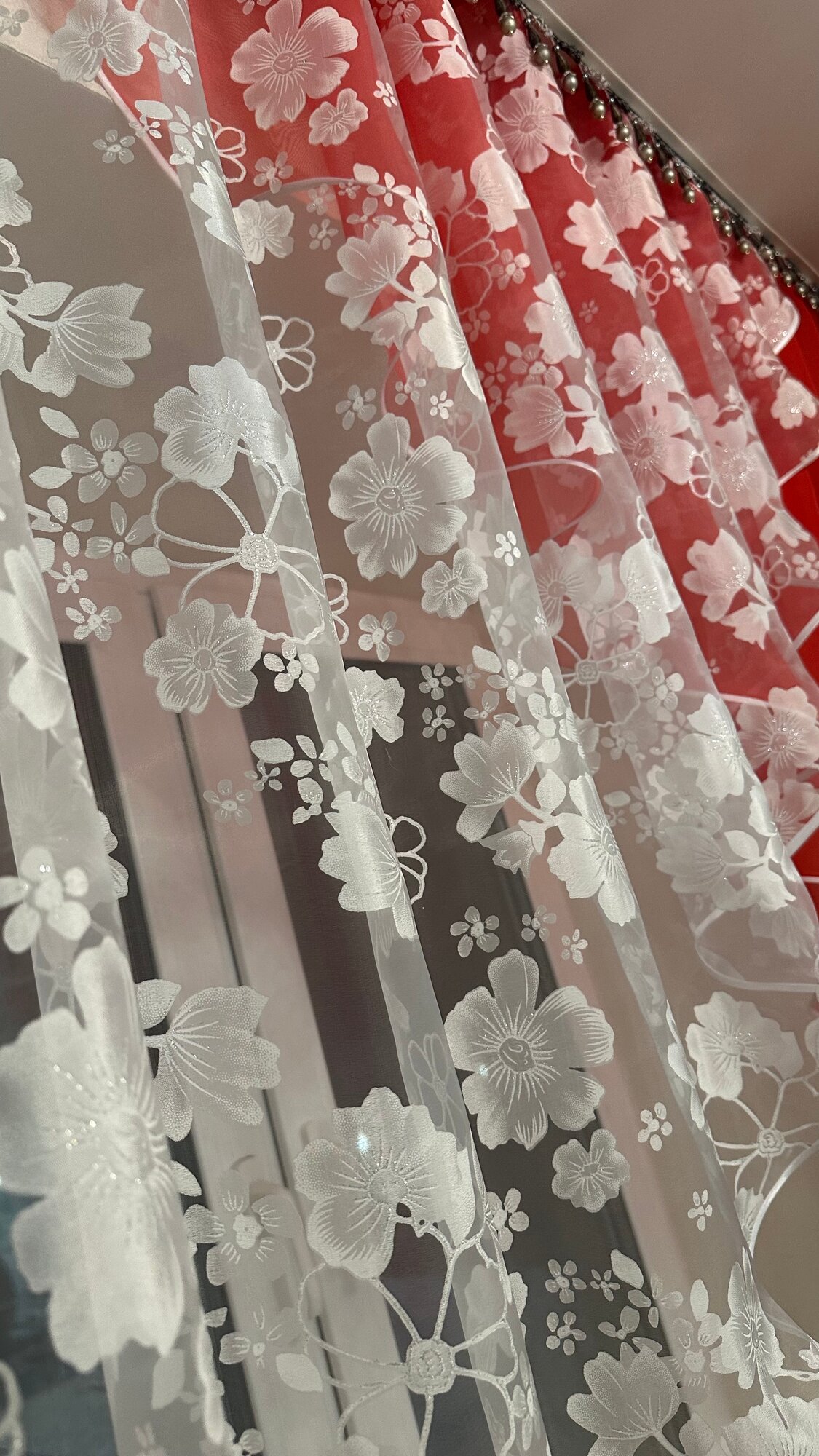 Кухонная шторка сакура розовая, ширина 3м, высота 1,7м
