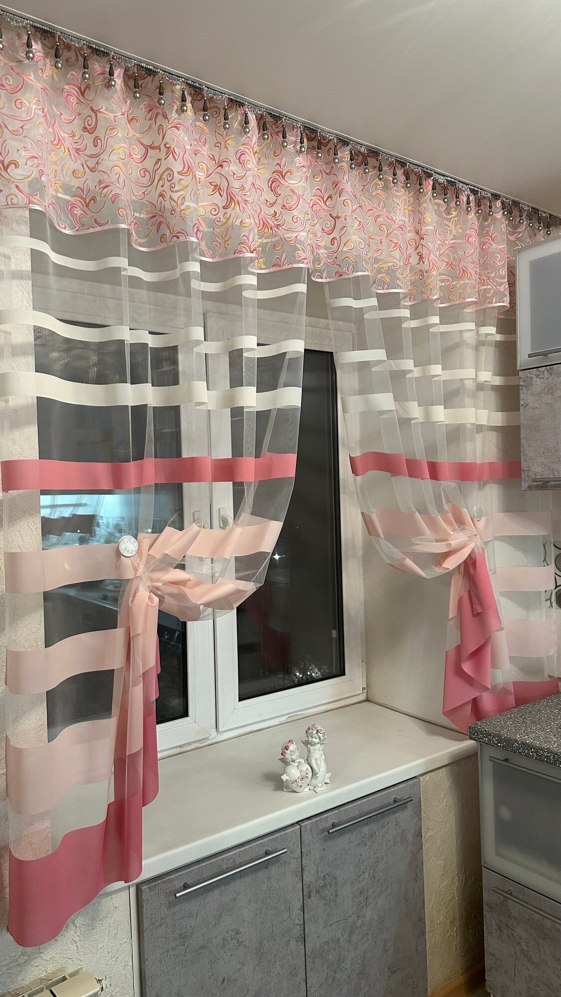Кухонная шторка пудровая, ширина 3м, высота 1,7м