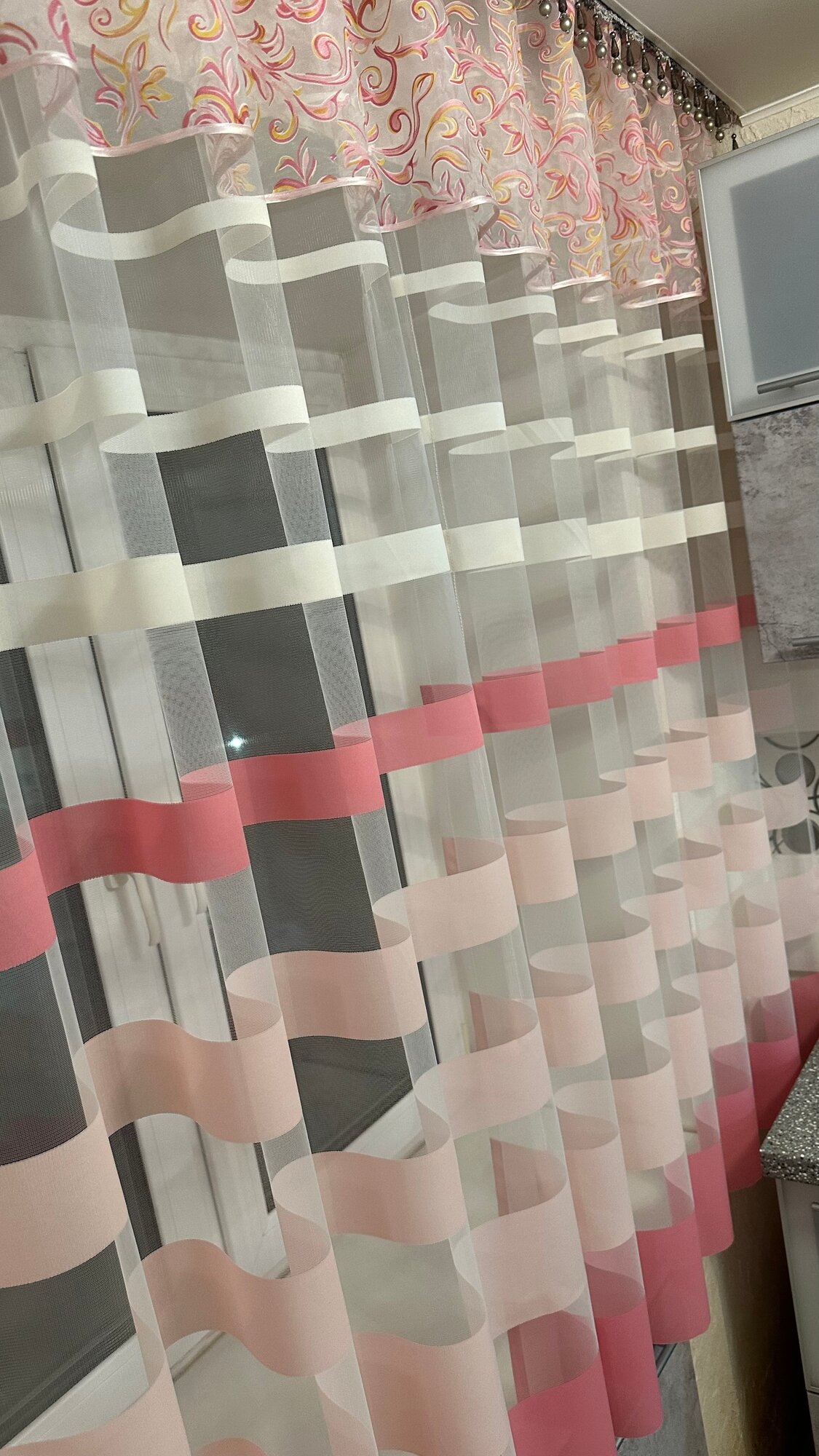 СохранитьКухонная шторка полосы пудровые, ширина 3м, высота 1,7м интересное: