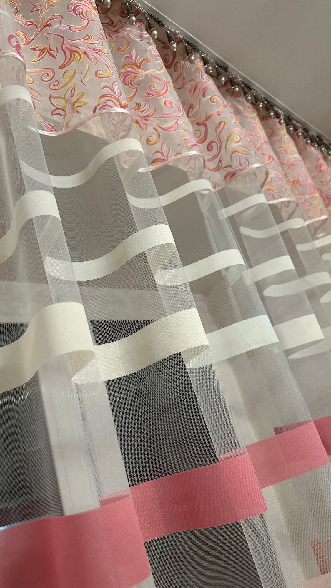 Кухонная шторка сакура розовая, ширина 3м, высота 1,7м