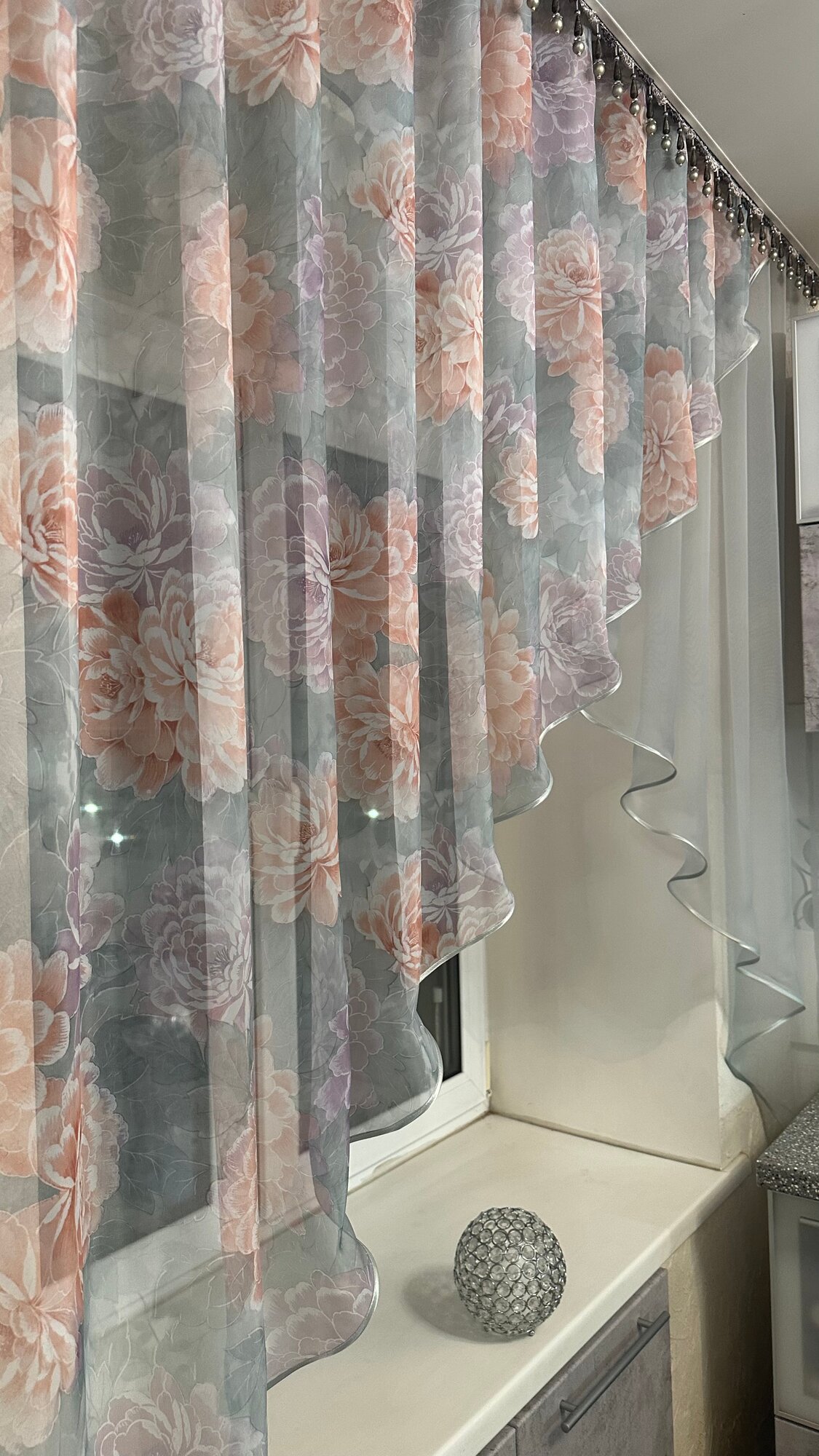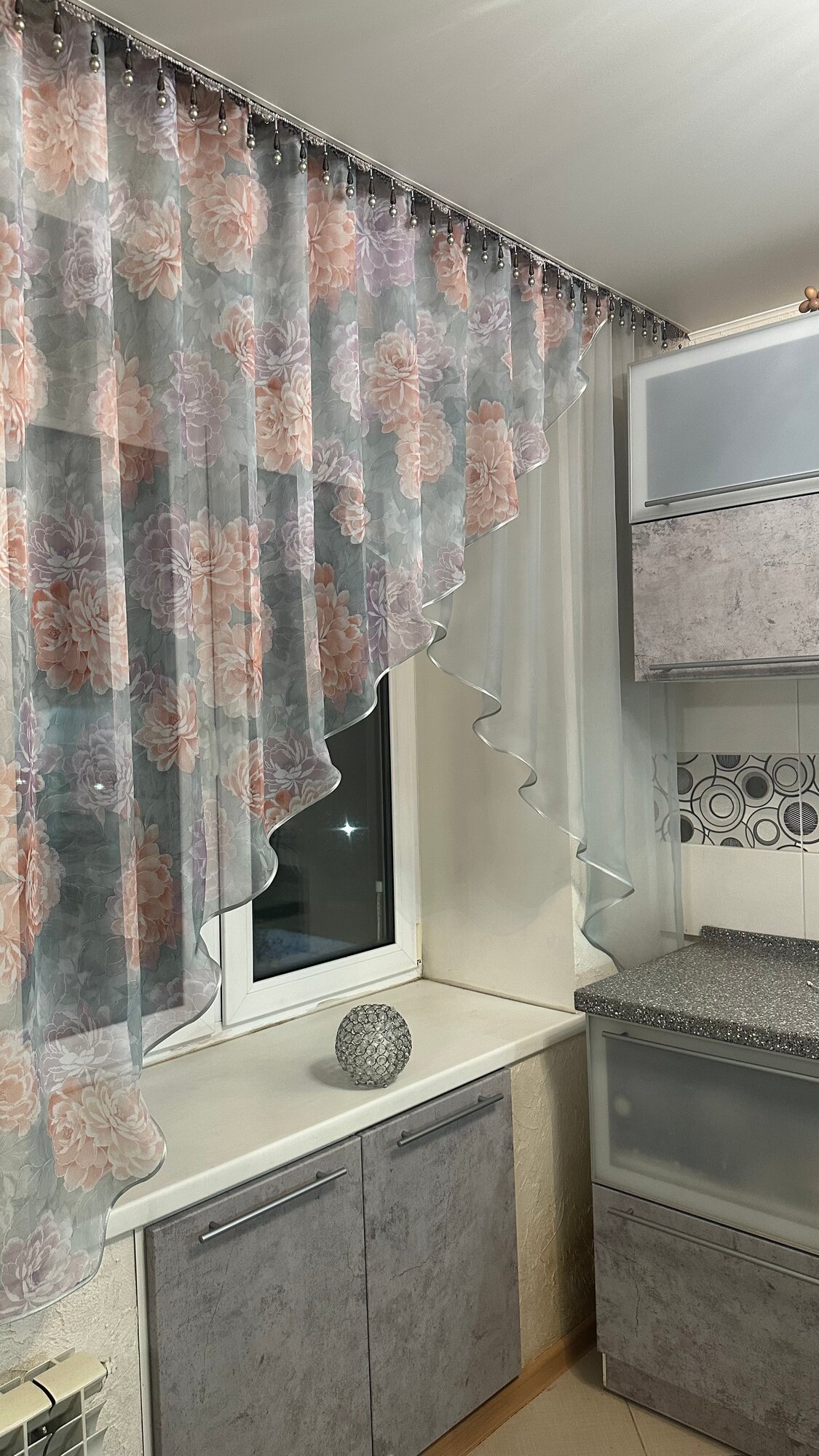 Кухонная шторка серая с серебром, ширина 3м, высота 1,7м