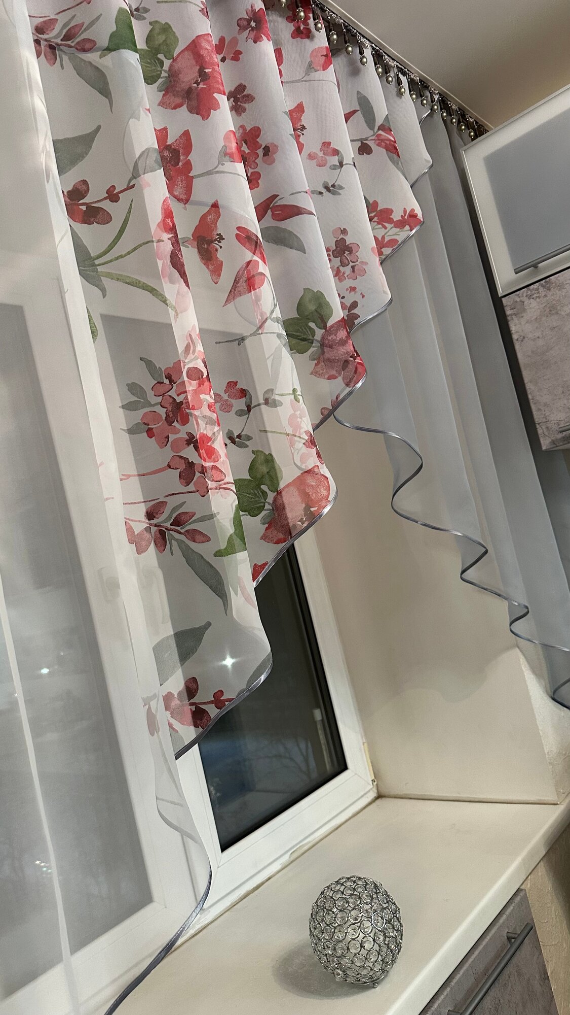 Кухонная шторка сакура розовая, ширина 3м, высота 1,7м