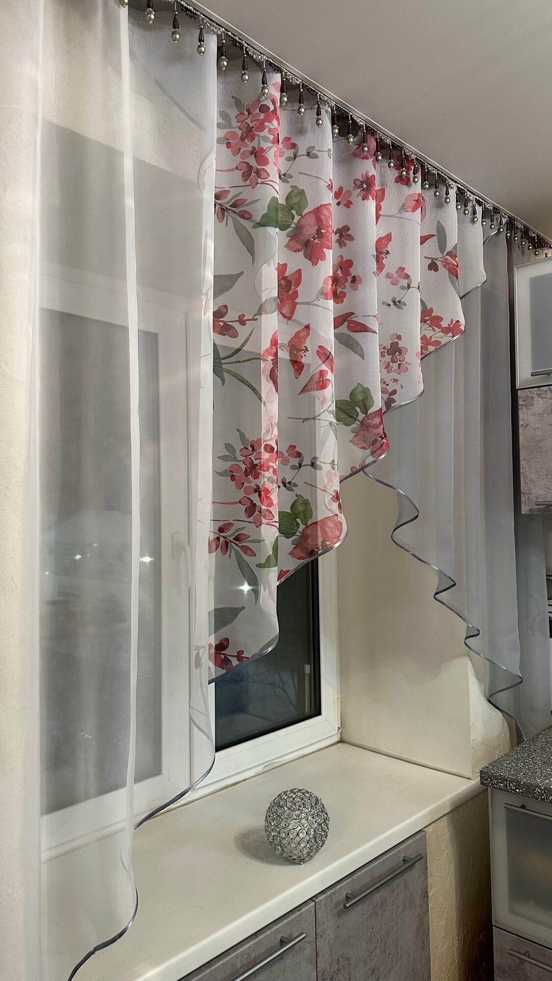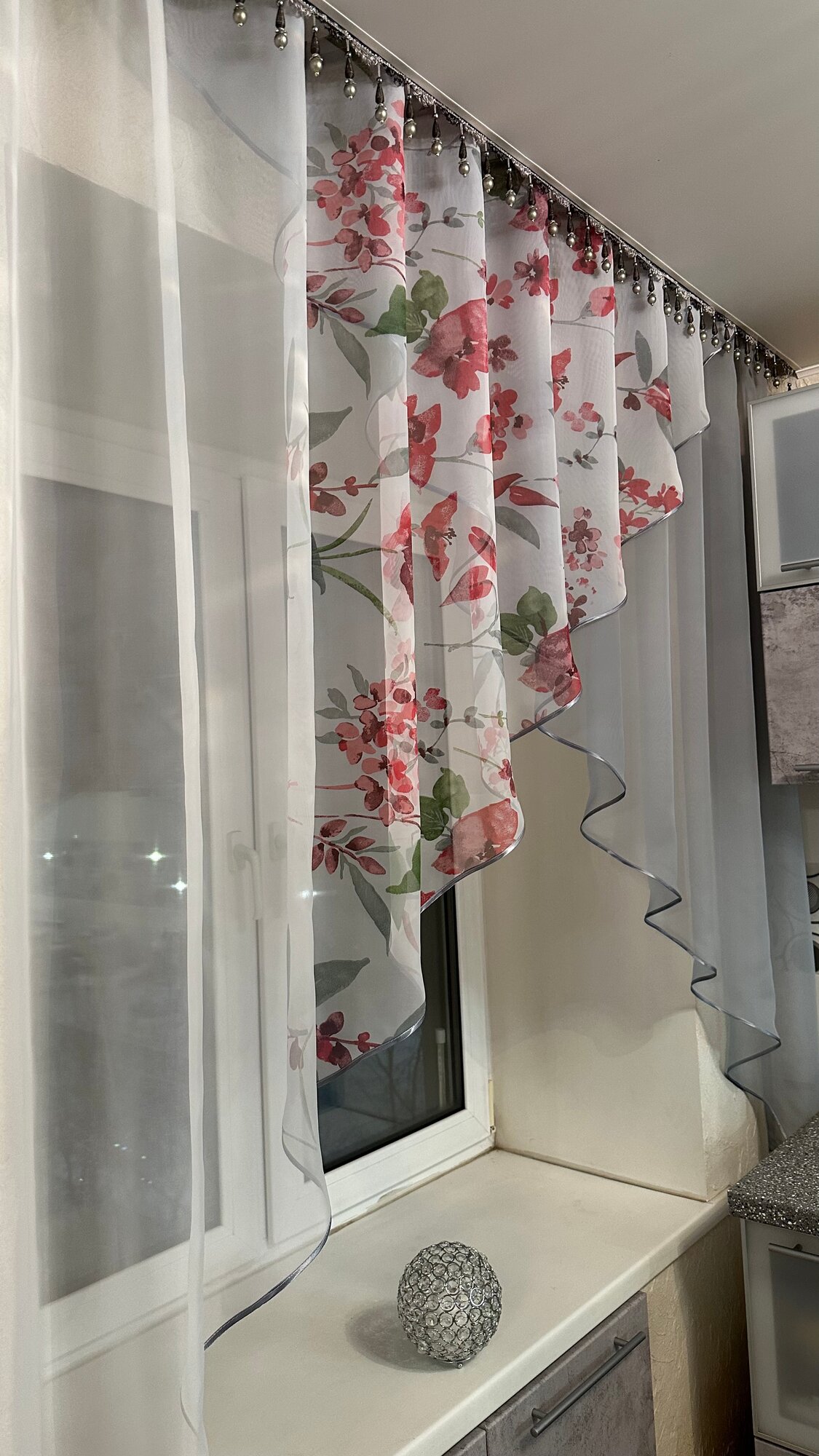 Кухонная шторка ирисы серые, ширина 3м, высота 1,7м