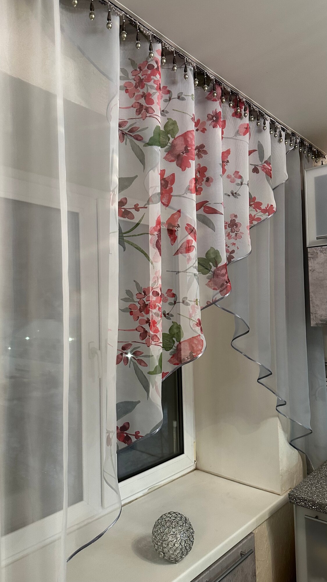 Кухонная шторка серая с серебром, ширина 3м, высота 1,7м