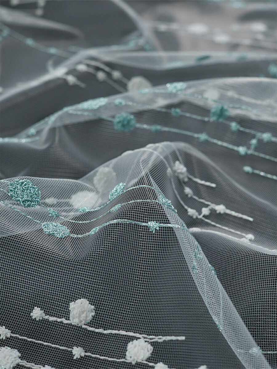 Однотонный тюль микросетка с вышивкой и люрексом 950x230 см.