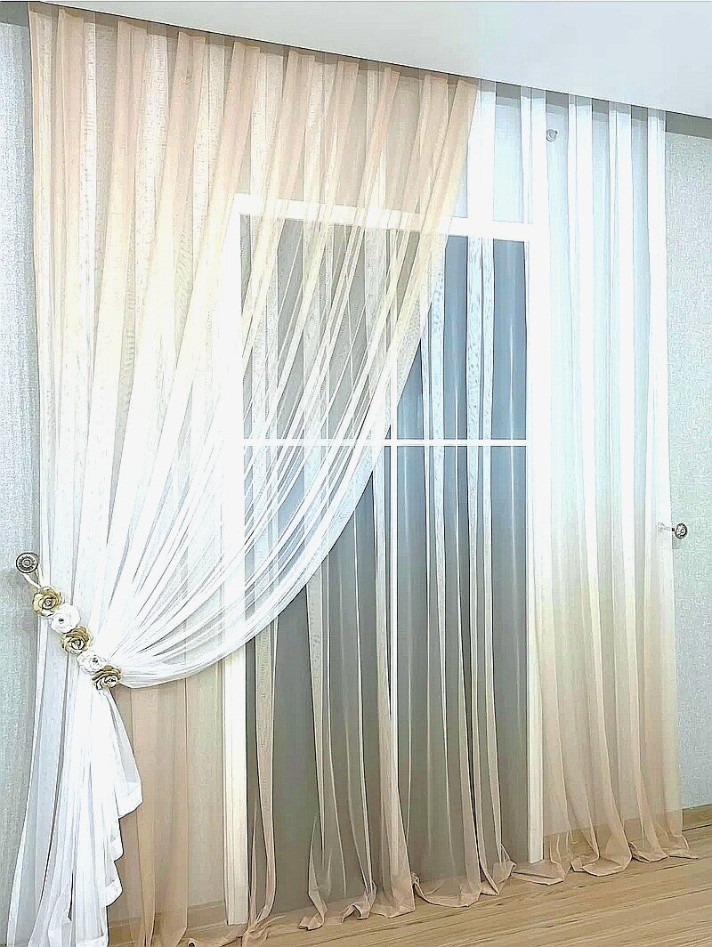 Купить Тюль на тесьме с переходом цвета, выс.250см. шир.150см. Для кухни, спальни, гостиной, столовой, детской