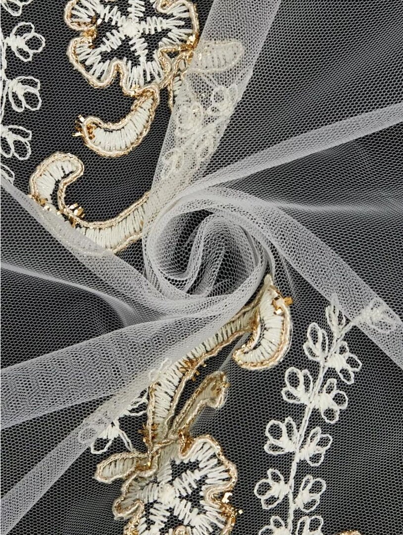 Тюль, микровуаль, 4 м x 240 см, с вышивкой, светлый, прозрачный