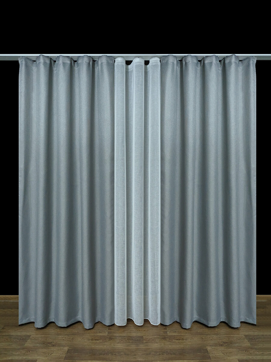 Готовая плотная интерьерная штора(портьера) рогожка без рисунка 350x250 см.(1шт.) со шторной лентой