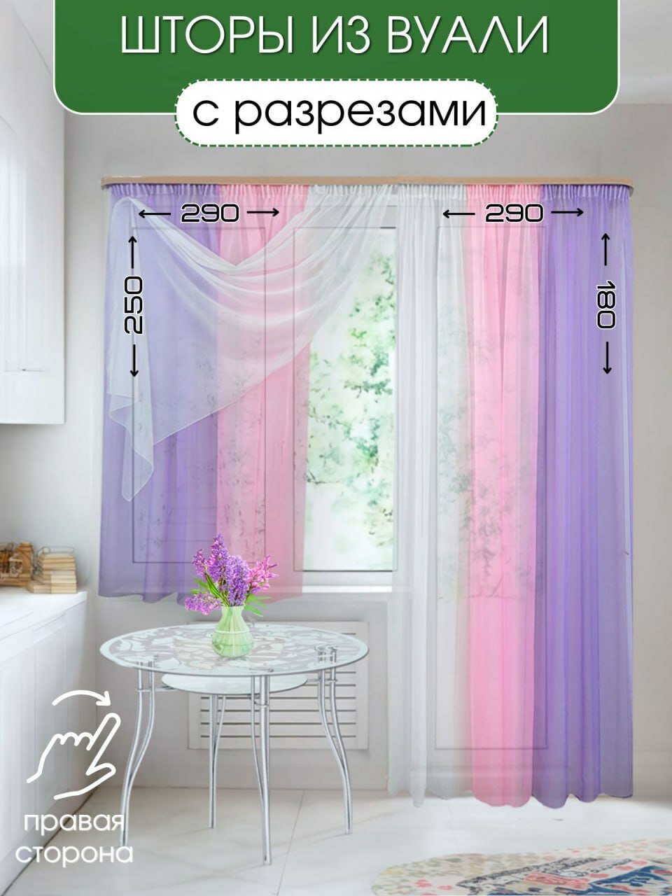 Тюлевые шторы Домтекс35 "Радуга левая", вуаль, 290*250, 290*180 см, сиреневый