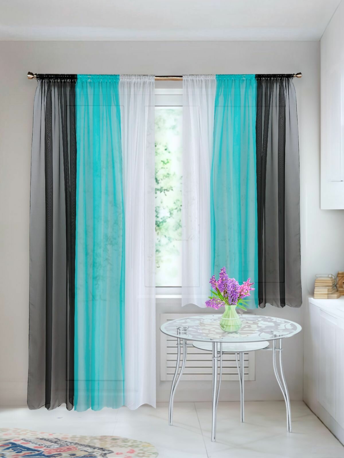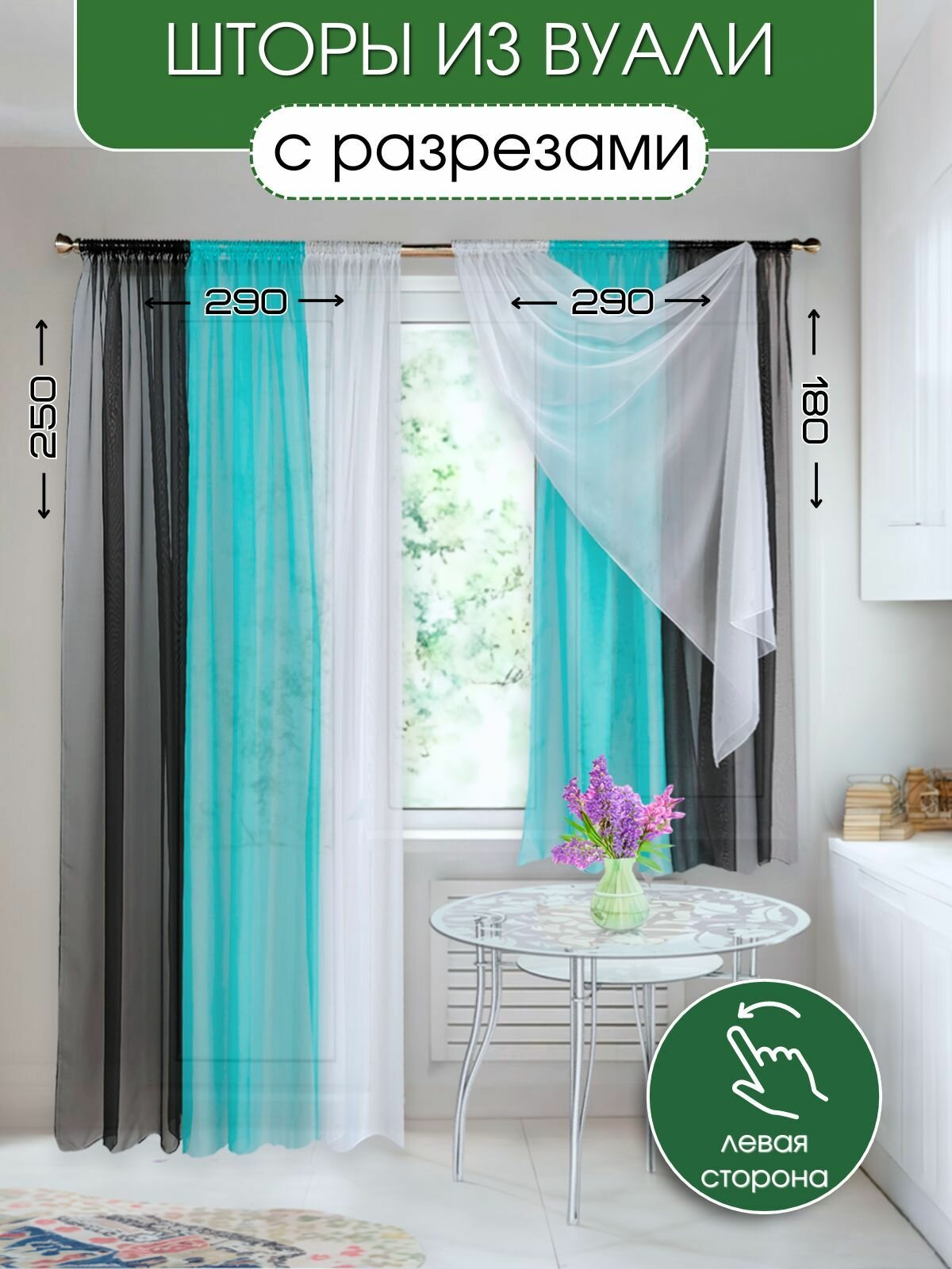 Купить Длинные шторы для кухни Домтекс 35 Радуга, , Черный/бирюзовый, левая сторона