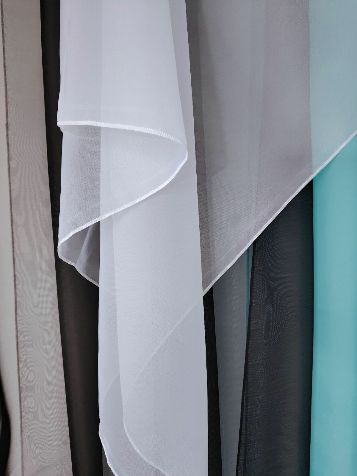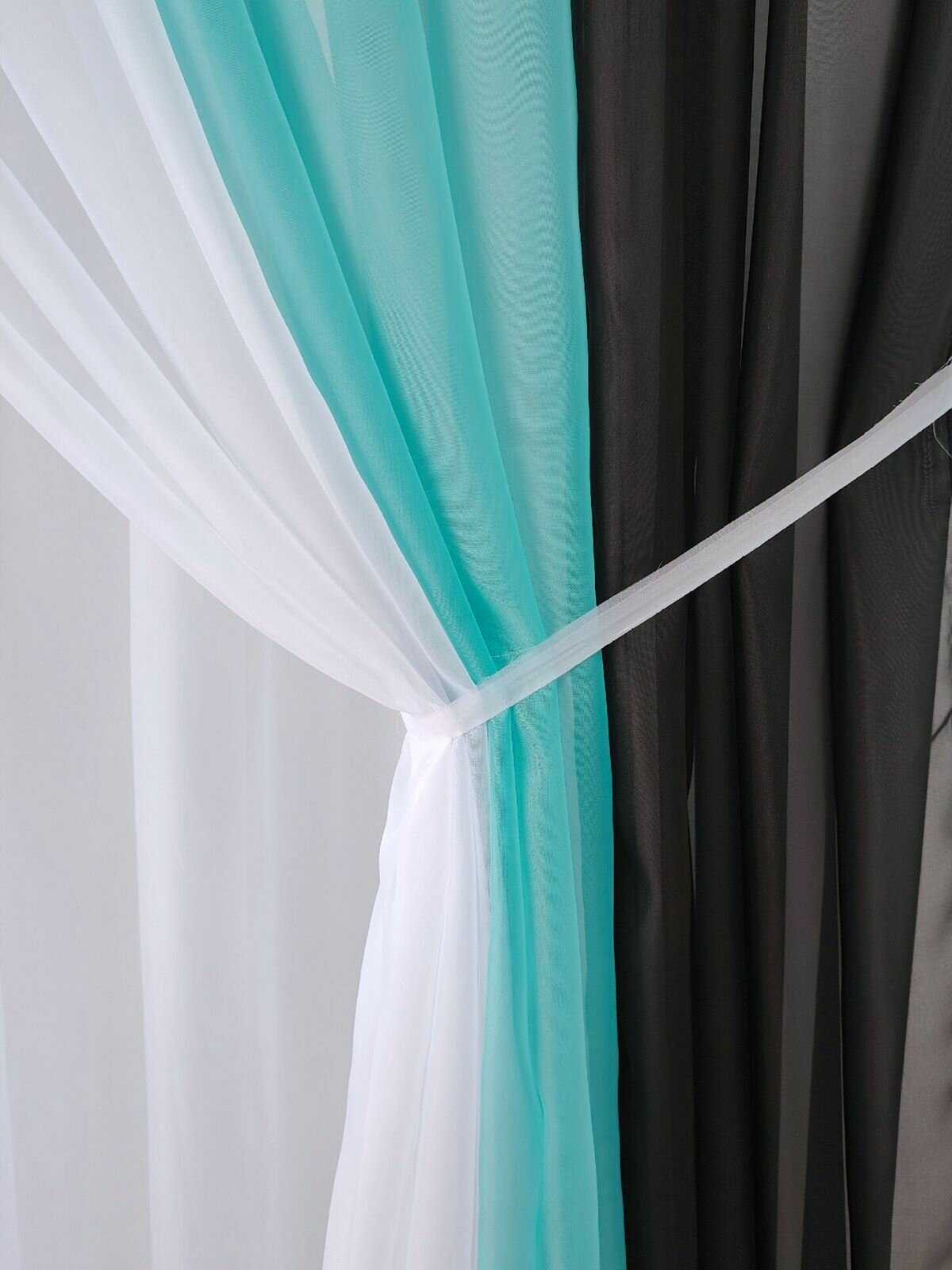 Длинные шторы для кухни Домтекс 35 Радуга, , Черный/бирюзовый, левая сторона