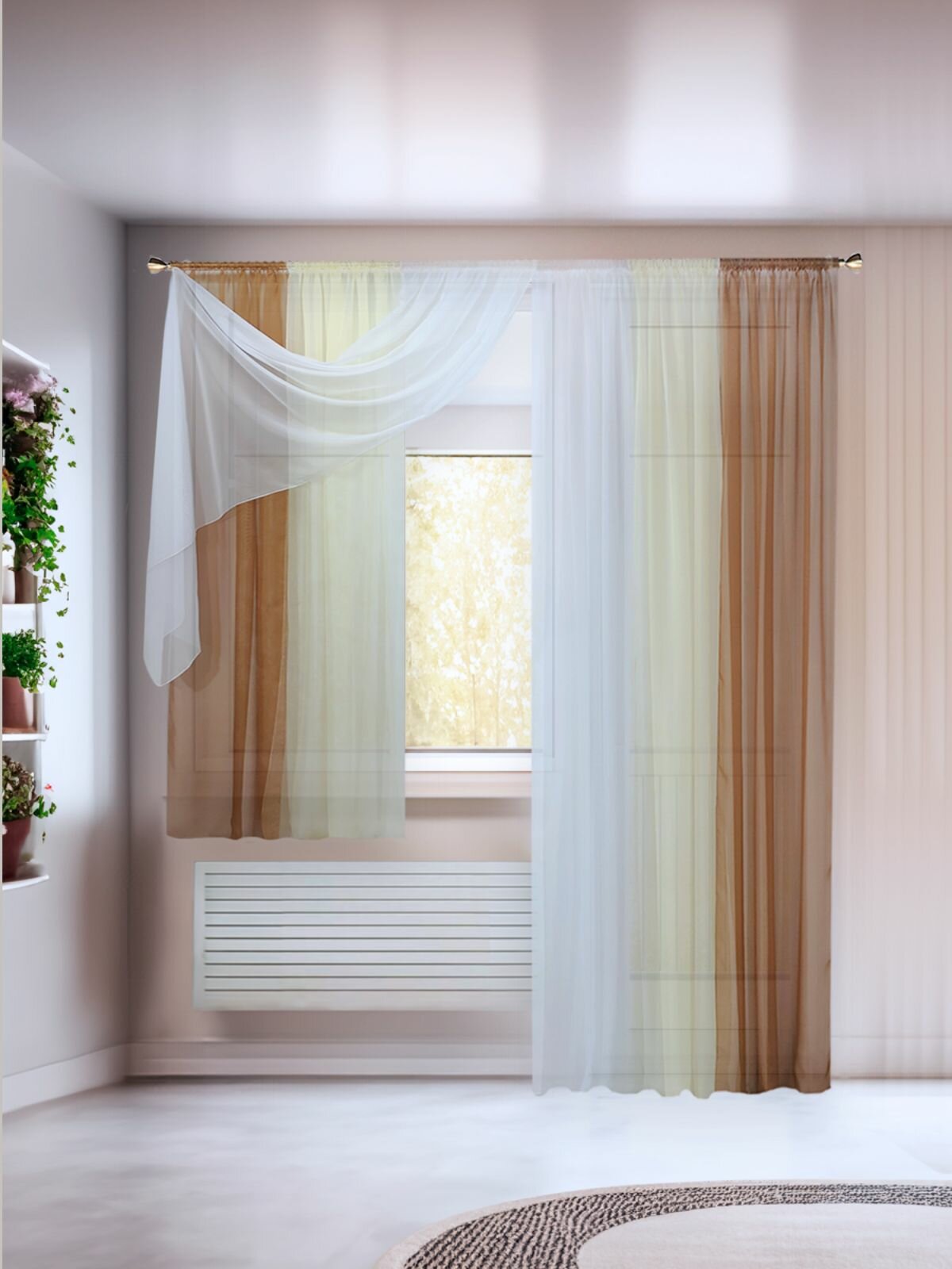 Купить Шторы Домтекс35 Радуга, вуаль, крепление лентой, бежевые, белые, кремовые, ширина 580 см