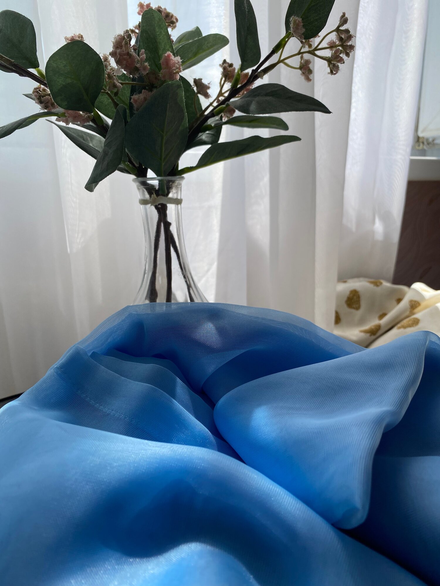 Тюль вуаль голубая на шторной ленте в спальню в гостиную на кухню 300х250 см интересное: