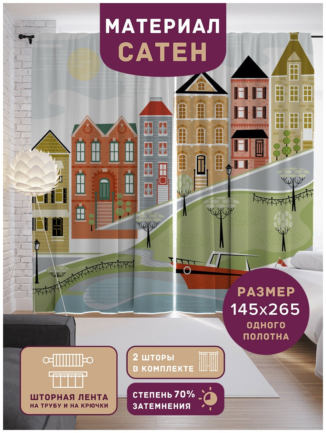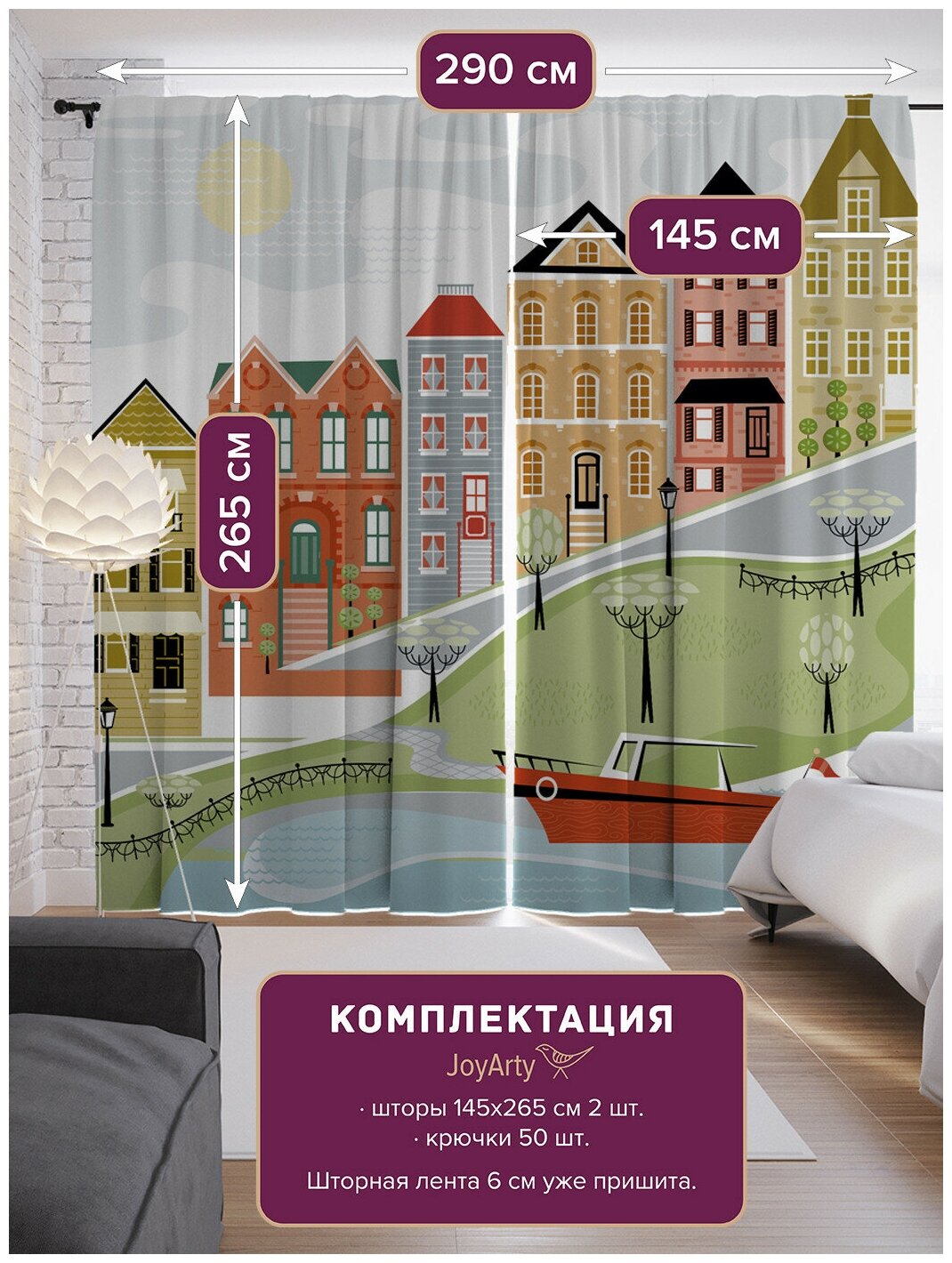 Шторы, фотошторы JoyArty "Детское воспоминание" из ткани сатен, 2 полотна 145x265 см, шторная лента и крючки интересное: