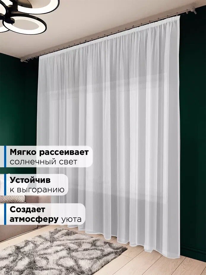 Тюль вуаль в спальню и гостиную длинная 600х250 см белая интересное: