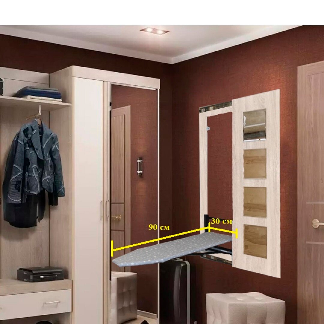 Настенная гладильная доска за зеркалом, встраиваемая в шкаф 115х40см. Дуб Сонома интересное: